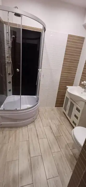 Wyposażenie: kuchnia w pełni umeblowana zabudową pod wymiar, wyposażona w duży i drobny sprzęt AGD, W otwartym salonie rozkładana kanapa typu narożnik, stolik kawowy z półką i komodą pod telewizor. W przedpokoju duże lustro, metalowa ścianka z półkami na odzież i obuwie. 2 sypialnie, w jednej komoda i podświetlana toaletka. Duży przedpokój z wyodrębnioną garderobą, zamykana spiżarka z półkami, łazienka z kabiną, razem z WC. Do mieszkanie przynależy dodatkowe pomieszczenie, wielkości około 16 m2, przyległe, które po adaptacji powiększy przestrzeń lokalu.