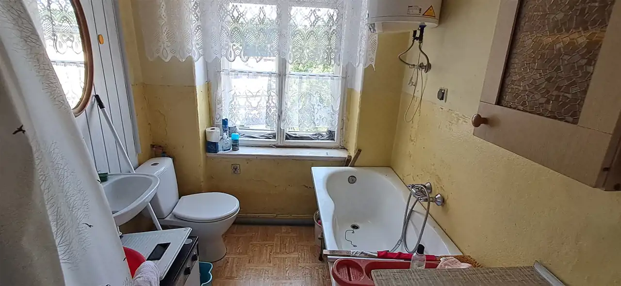 - Media Ogrzewanie: piec kaflowy; Woda: bojler elektryczny