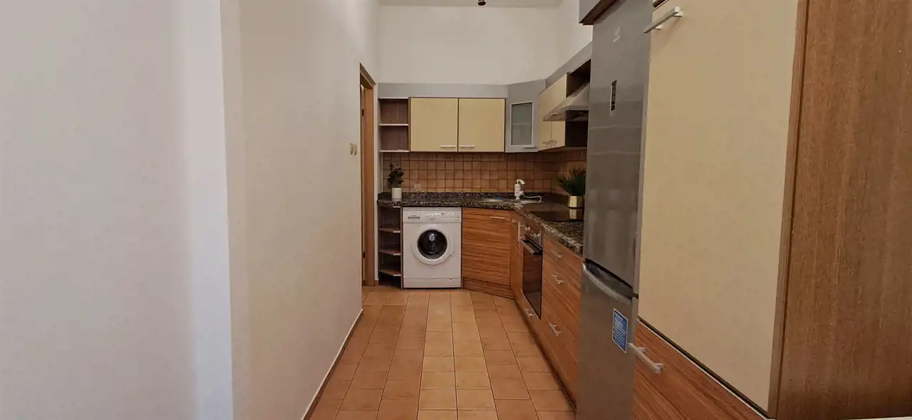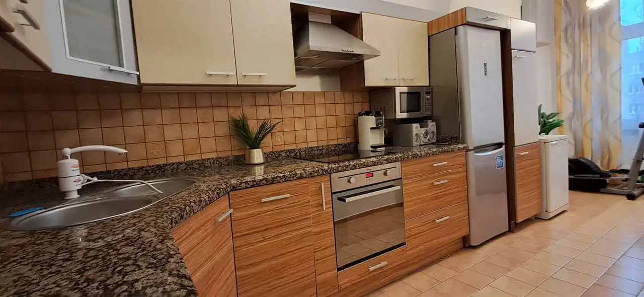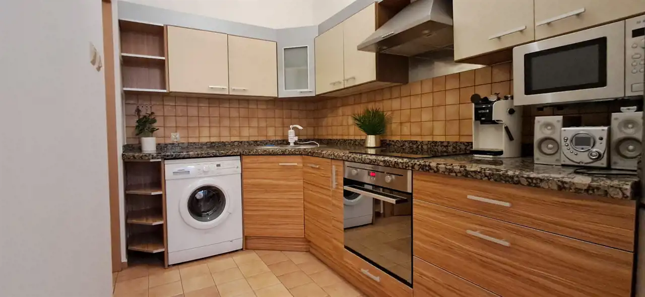 - kuchnia z zabudową meblową i wyposażeniem AGD (lodówka, piekarnik, płyta ceramiczna)