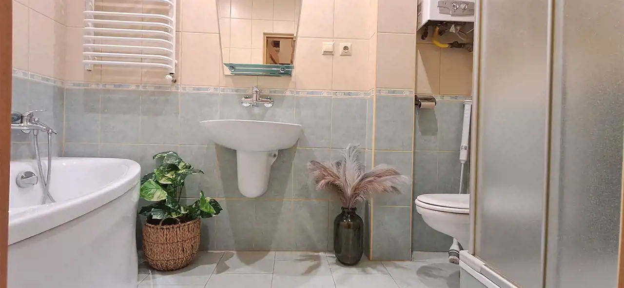 - komfortowa wanna w łazience oraz kabina prysznicowa