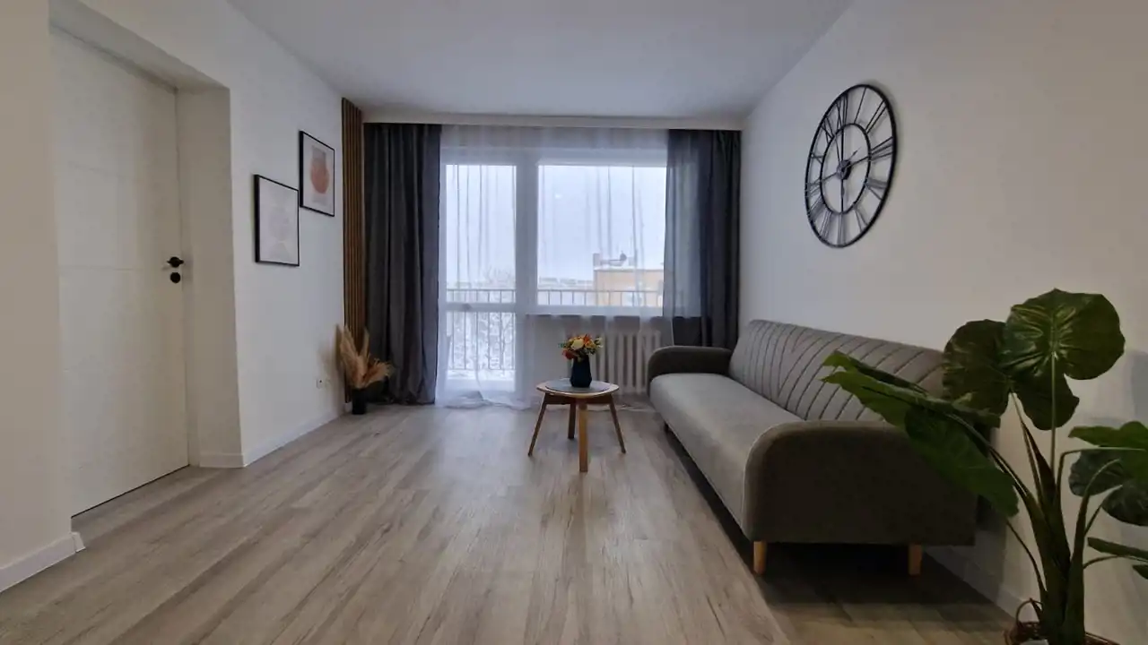 Z salonu prowadzi wyjście na duży, słoneczny balkon.