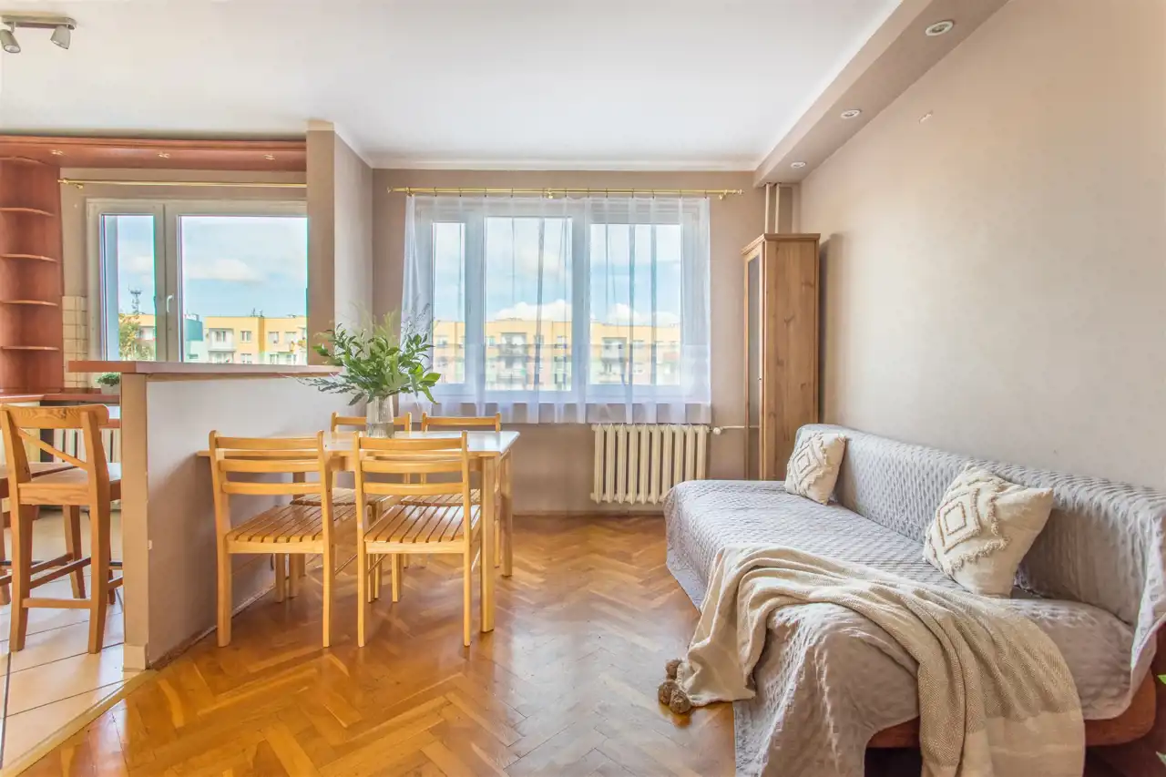 Przemyślany rozkład pomieszczeń z możliwością aranżacji trzeciego pokoju – idealne dla pary, rodziny z dzieckiem lub jako inwestycja pod wynajem. - Przytulne wnętrze gotowe do zamieszkania