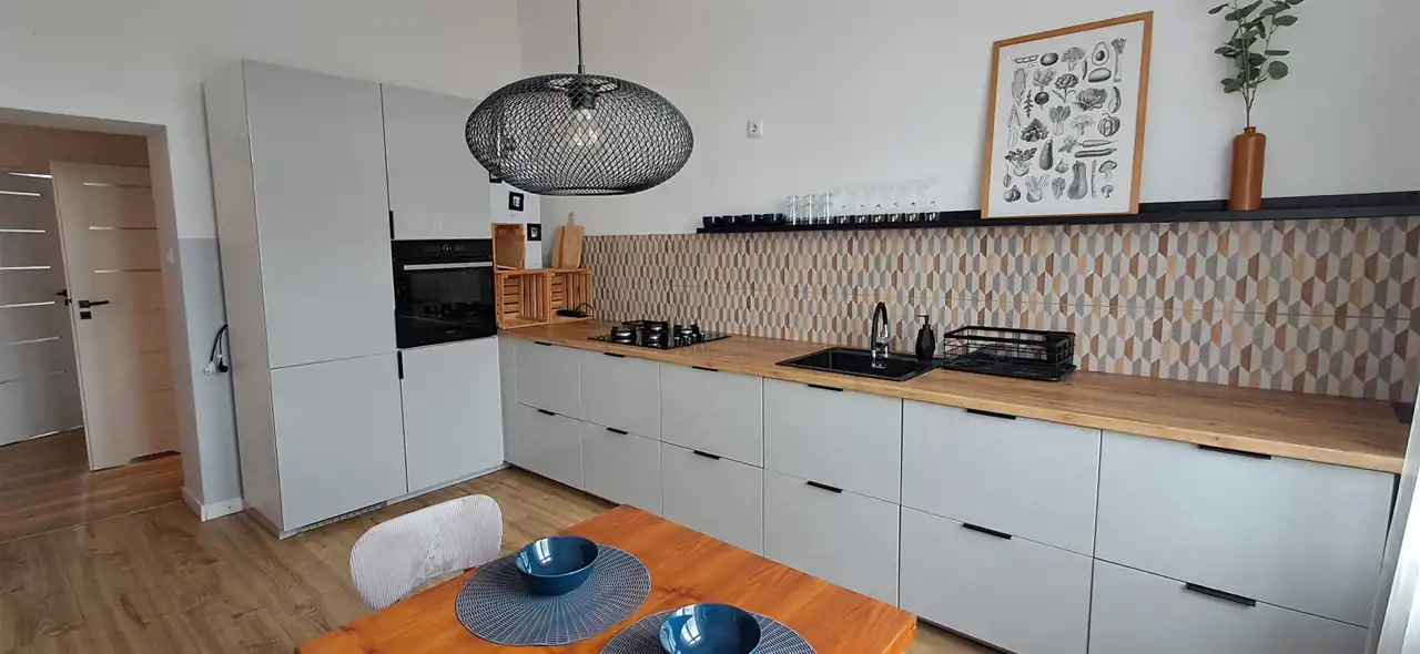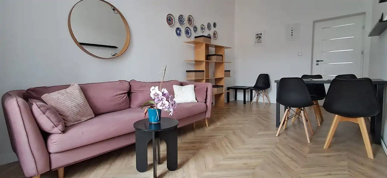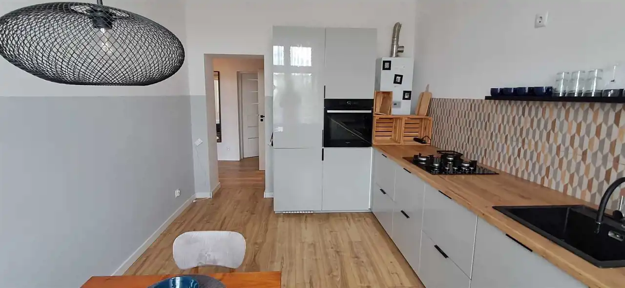 Wnętrze zostało urządzone z dbałością o detale – oferowane z pełnym umeblowaniem i wyposażeniem (sprzęty AGD), co pozwala na natychmiastowe wprowadzenie się bez dodatkowych nakładów finansowych.