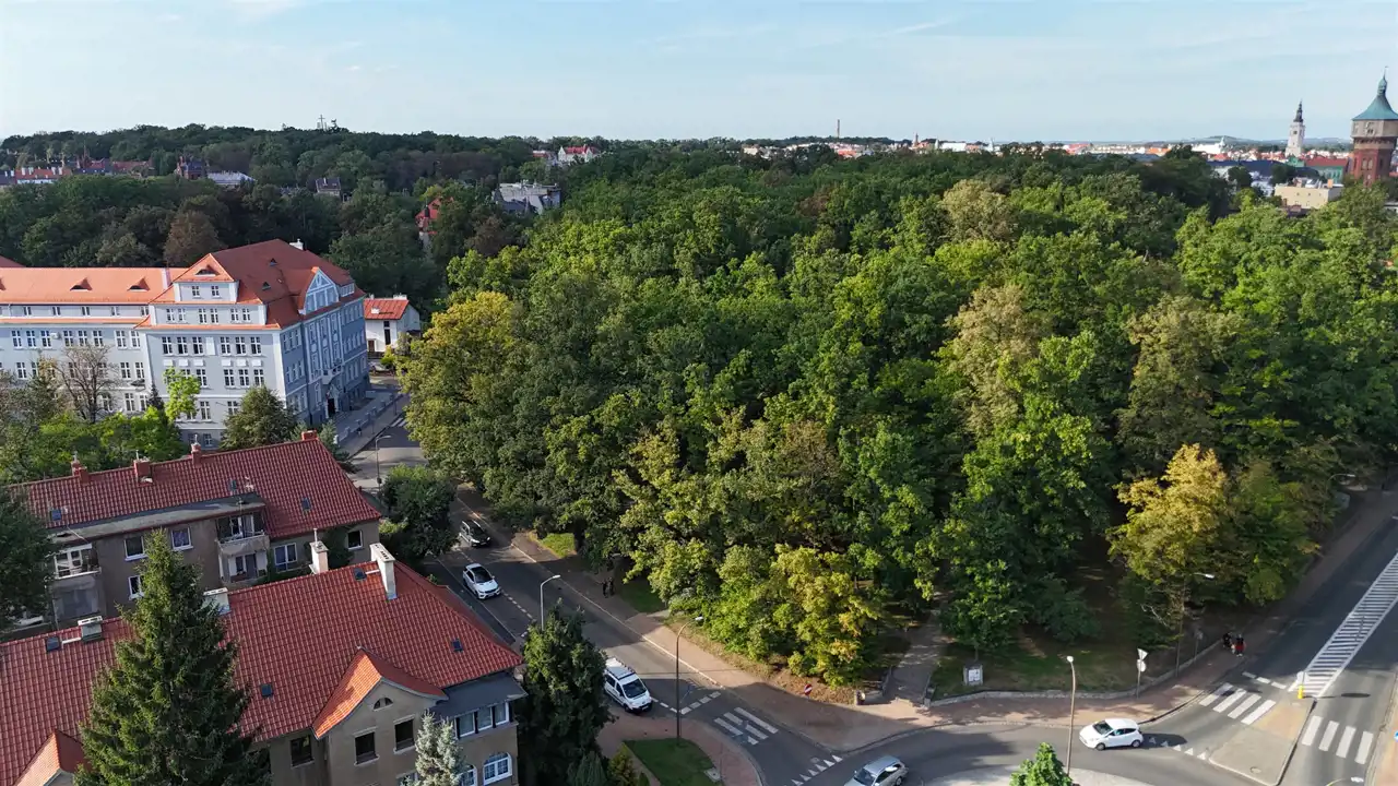 Z okien rozpościera się widok na Park Kasprowicza który znajduje się po drugiej stronie .