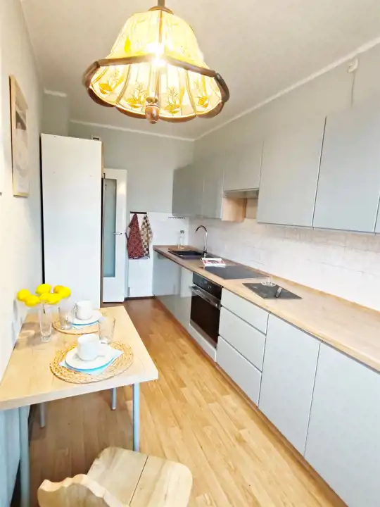 W cenie: meble w kuchni wraz z z kuchenką i zmywarką-kuchnia nowa. Szafa w zabudowie na przedpokoju. Mogą zostać łózko i szafy w sypialni oraz biurko i szafka. W łazience pralka.