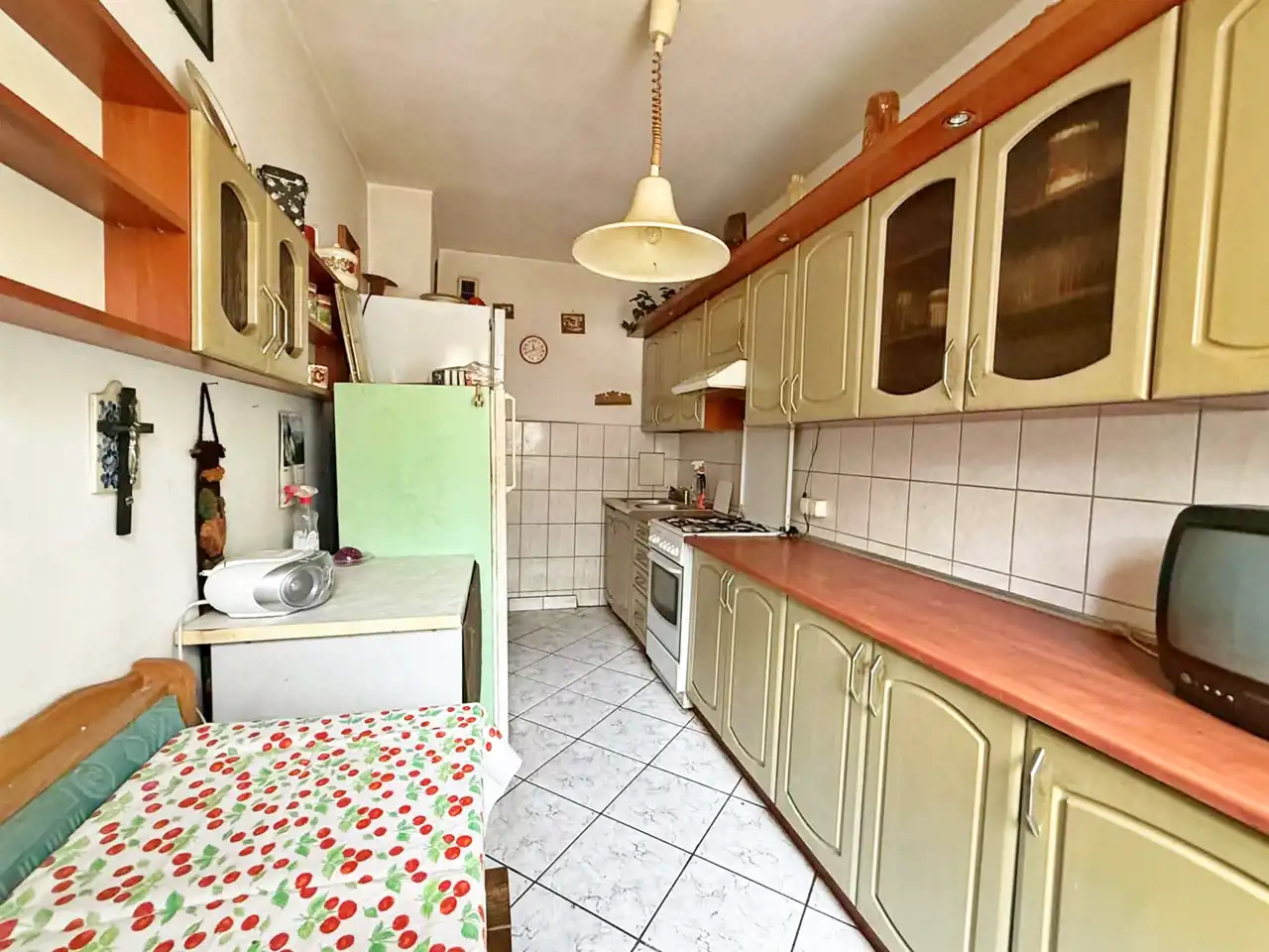 Stan: Mieszkanie do remontu: okna PCV starszego typu. Na podłogach kafle i panele starszego typu. Mieszkanie jasne, ciepłe, słoneczne. Kuchnia oddzielna z oknem. Pokoje ciepłe i słoneczne. Ogrzewanie - CO miejskie. . Instalacja gazowa wymieniona. Instalacja wodno-kanalizacyjna i elektryczna starszego typu.