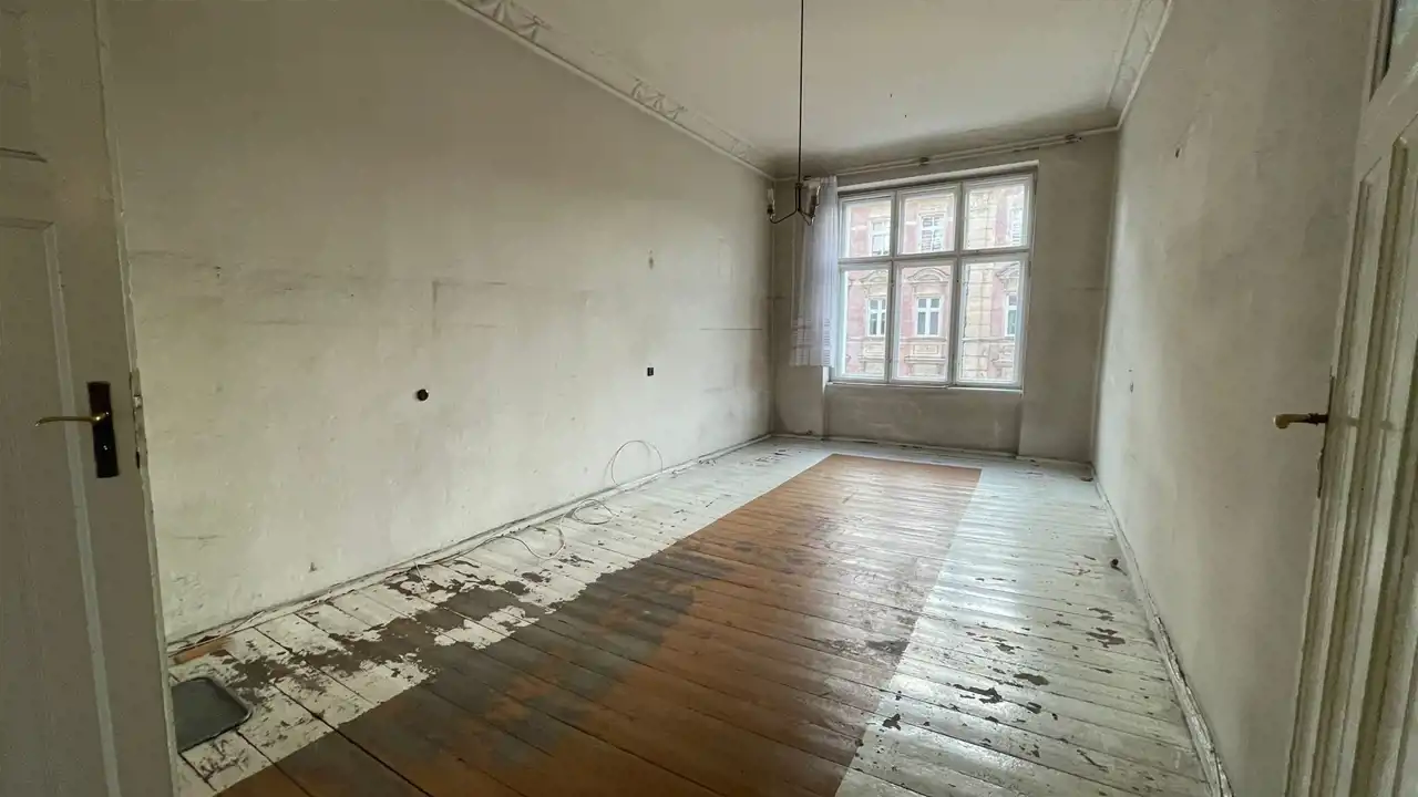 Mieszkanie wymaga kapitalnego remontu, ale dzięki układowi i przestrzeni pozwala stworzyć prawdziwy apartament – np. z dodatkową łazienką, garderobą czy gabinetem do pracy.