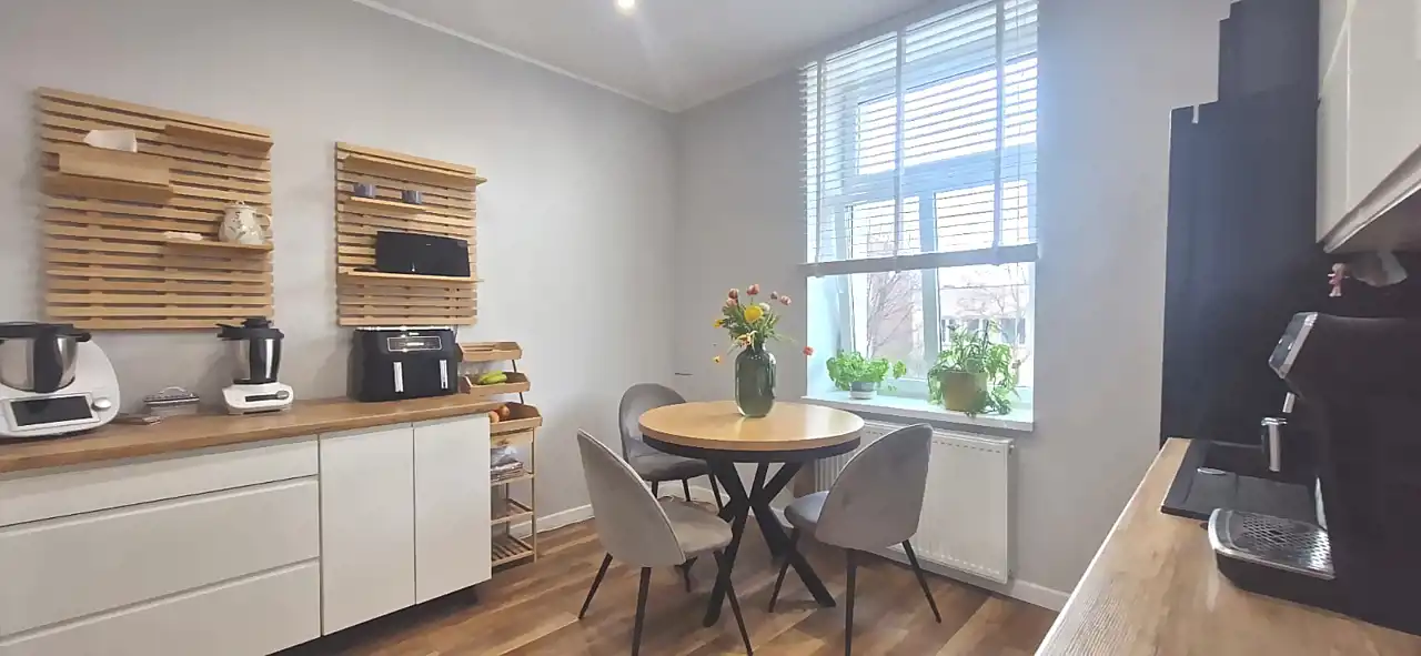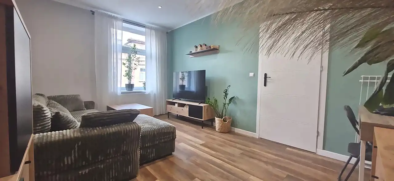 Położone na 2. piętrze budynku wielorodzinnego, w odległości kilku minut spacerem od rynku, mieszkanie łączy praktyczny układ z doskonałą lokalizacją.