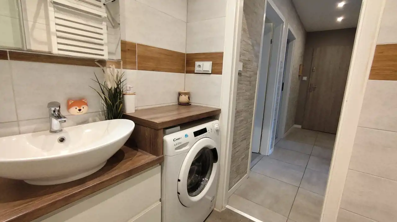 Czynsz: 765 zł (dla dwóch osób, w tym śmieci, woda, ścieki), dodatkowo płatny prąd