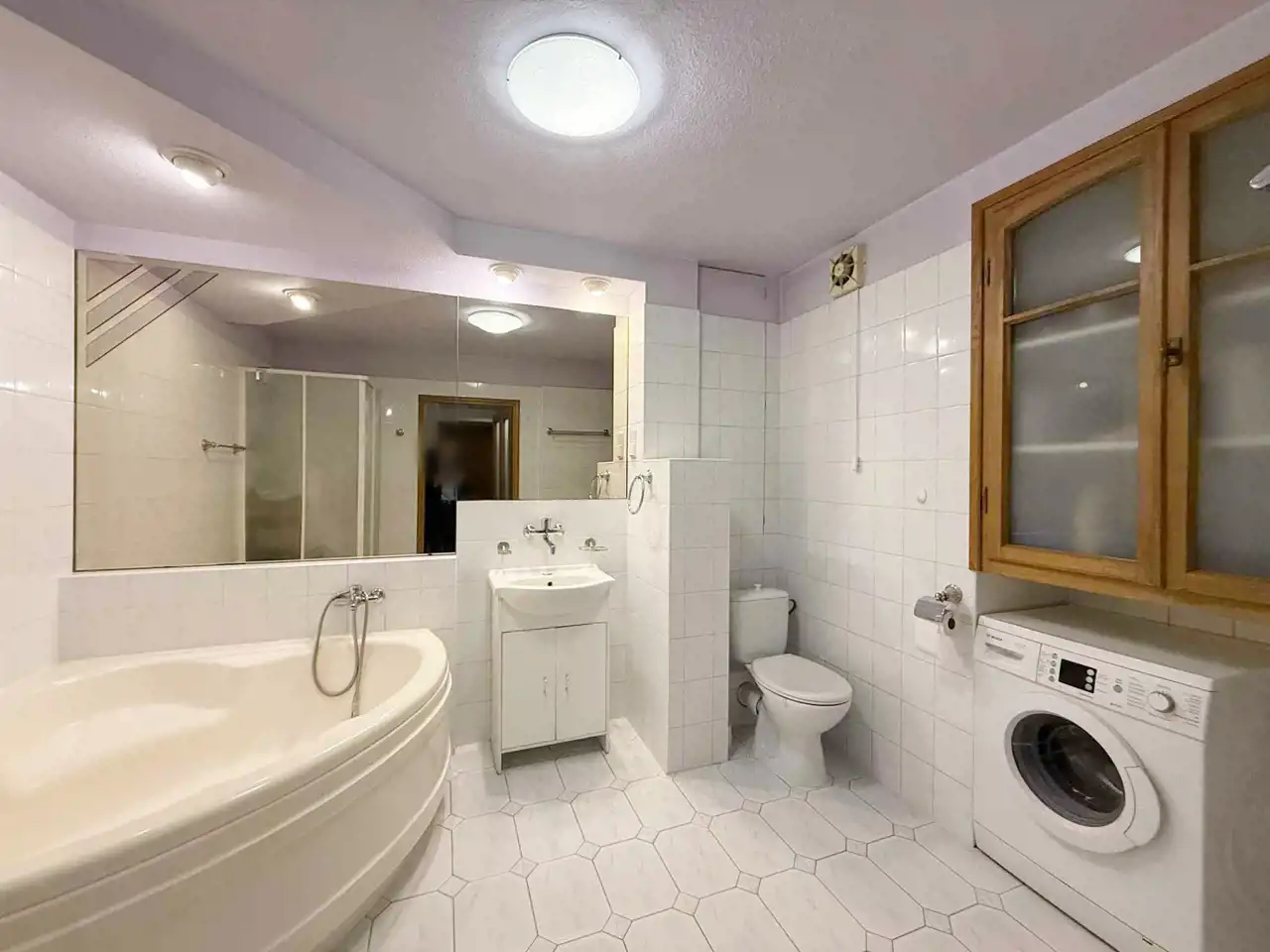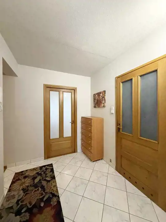 Rozkład: przedpokój, salon z wyjściem na balkon z którego rozpościera się wspaniały widok na góry, 2 sypialnie z czego jedna ma garderobę, oddzielna kuchnia z jadalnia i spiżarką, duża łazienka z WC. W mieszkaniu były pierwotnie 4 pokoje, więc można wrócić do tego rozkładu.