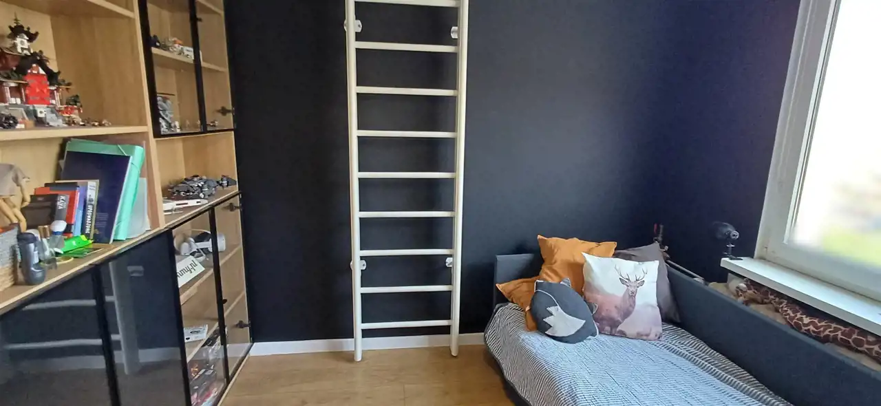Stan : Mieszkanie jest bardzo zadbane. Przeszło generalny remont, wymienione zostały wszystkie instalacje, podłogi. Przebudowano ściany, dzięki czemu układ pomieszczeń jest bardziej funkcjonalny. Wykonano oświetlenie na zasadzie energooszczędnych LEDÓW. Właściciel pozostawia część wyposażenia, m.in. kuchnię umeblowaną na wymiar. W przedpokoju zamontowane na stałe pojemne szafy. Mieszkanie komfortowe, do wykończenia użyto materiałów wysokiej jakości. Z dużego, otwartego balkonu rozpościera się przepiękny widok na Osiedle i dalsze okolice. Mieszkanie jest bardzo ciepłe i słoneczne. CO i ciepła woda z sieci. Przy budynku plac zabaw dla dzieci.