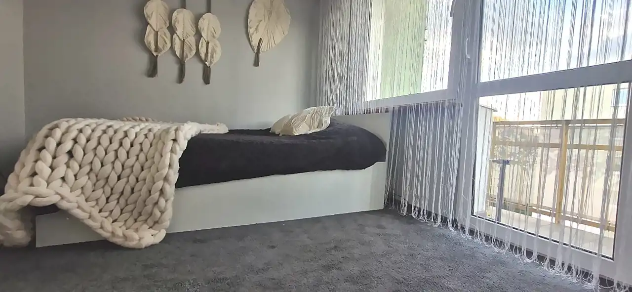 przytulna sypialnia z drugim balkonem,