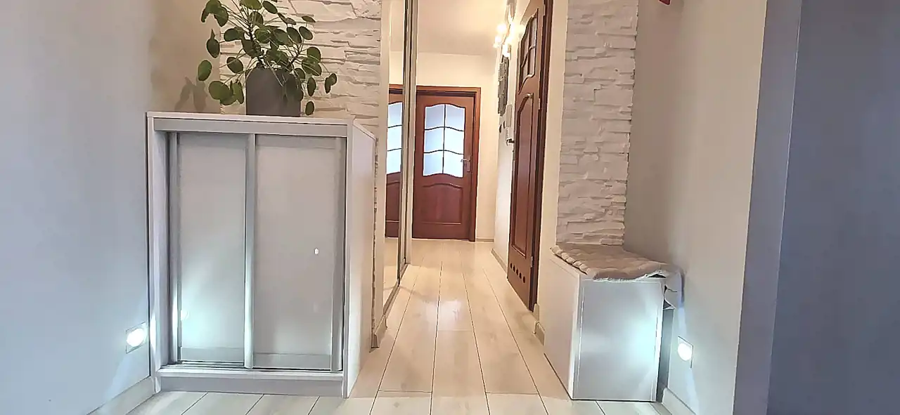 funkcjonalny przedpokój z szafami w zabudowie.