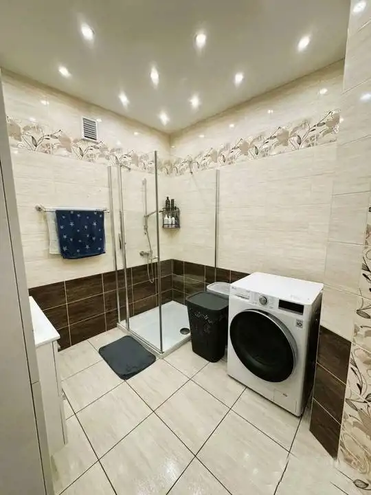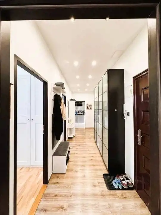 W pokojach na podłogach deski. Łazienka z przestronną kabiną prysznicową z niskim brodzikiem.
