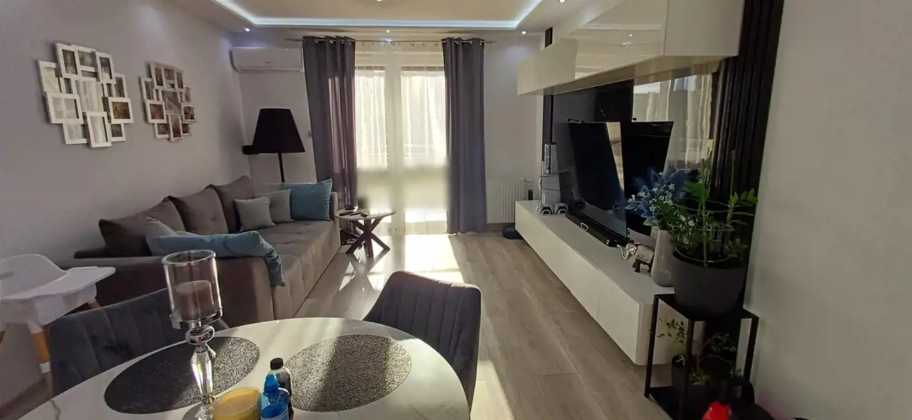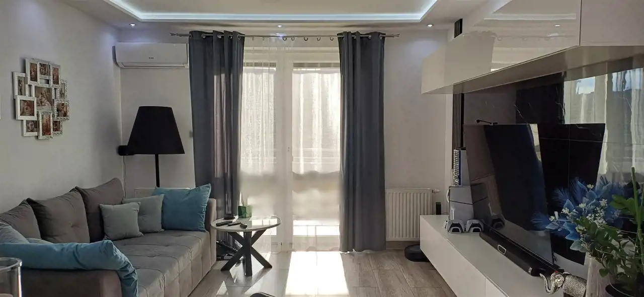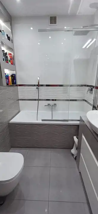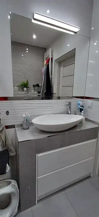 Wyposażenie: lokal gotowy do zamieszkania; w pełni umeblowany i wyposażony. W garderobie nowa pralka i suszarka. W kuchni meble na wymiar razem z małym i dużym AGD. W przedpokoju szafa wnękowa. Łazienka z wanną i zamontowaną na niej przesuwaną szybą. Komfortowo wyposażony salon. W pomieszczeniu zamontowana klimatyzacja. W mieszkaniu pozostaje wszystko widoczne na zdjęciach. Właściciele zabierają tylko osobiste przedmioty i urządzenie wielofunkcyjne do gotowania.