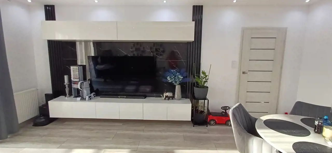 Stan: Mieszkanie gotowe do zamieszkania; luksusowe, nowe instalacje, okna PCV, podłogi panele i płytki, ściany gładzie i ozdobna glazura. Podwieszane sufity, podświetlane kasetony.