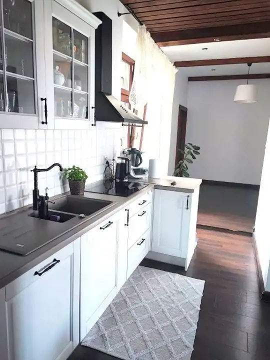 W cenie mieszkania pozostają meble kuchenne wraz ze sprzętem AGD, w łazience suszarka do prania oraz widoczne na zdjęciach meble w sypialni i przedpokoju. W pokoju dziecięcym duża szafa przesuwna.