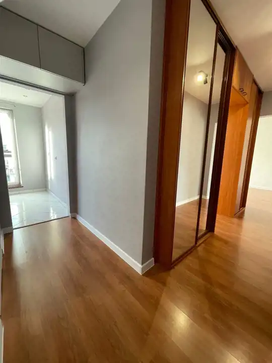 To komfortowe mieszkanie składa się z dwóch pokoi (z jednego wyjście na balkon), oddzielnej kuchni także z balkonem, przestronnego przedpokoju z szafami w zabudowie, łazienki z prysznicem i oddzielnej toalety.