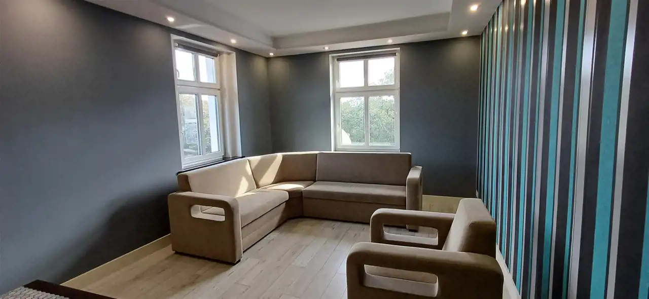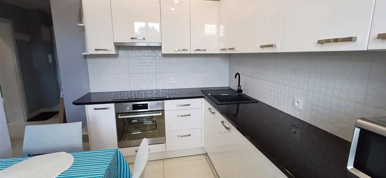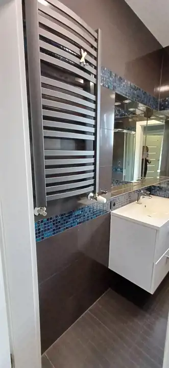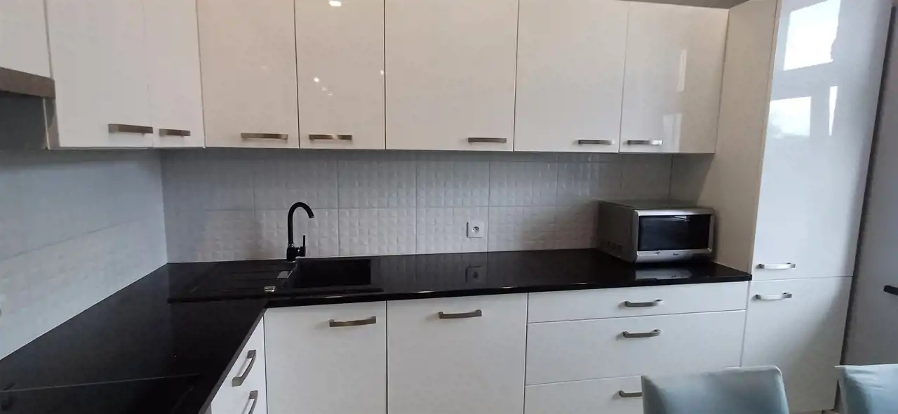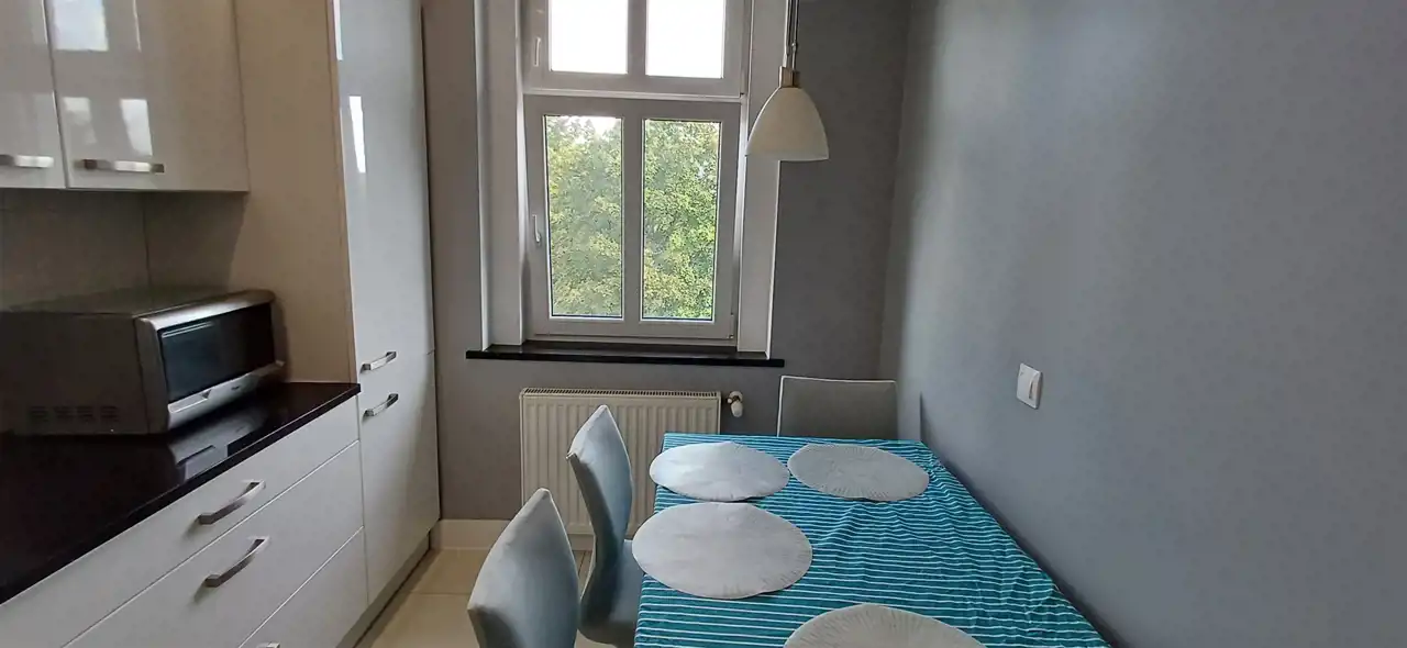 Stan i wyposażenie : mieszkanie w bardzo dobrym stanie. W pełni umeblowane i wyposażone. Nowoczesna kuchnia z dekoracyjnymi kafelkami. W salonie wygodny komplet wypoczynkowy , stolik i podwieszony TV. W sypialni duże łóżko, pojemna szafa. Garderoba z półkami do przechowywania. W łazience pralka. W oknach rolety dzień-noc.