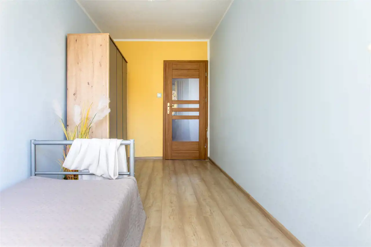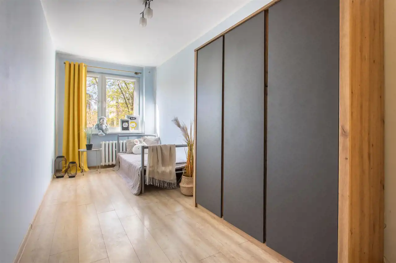 Drugi pokój – idealny jako dziecięcy pokoik, pełen kolorów i wyobraźni, lub jako domowe biuro, jeśli pracujesz zdalnie. Elastyczność tej przestrzeni pozwala dopasować ją do Waszych potrzeb.