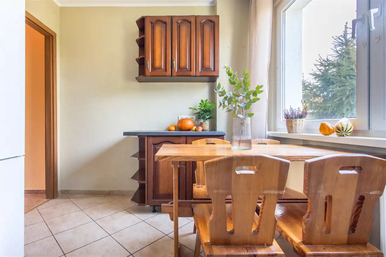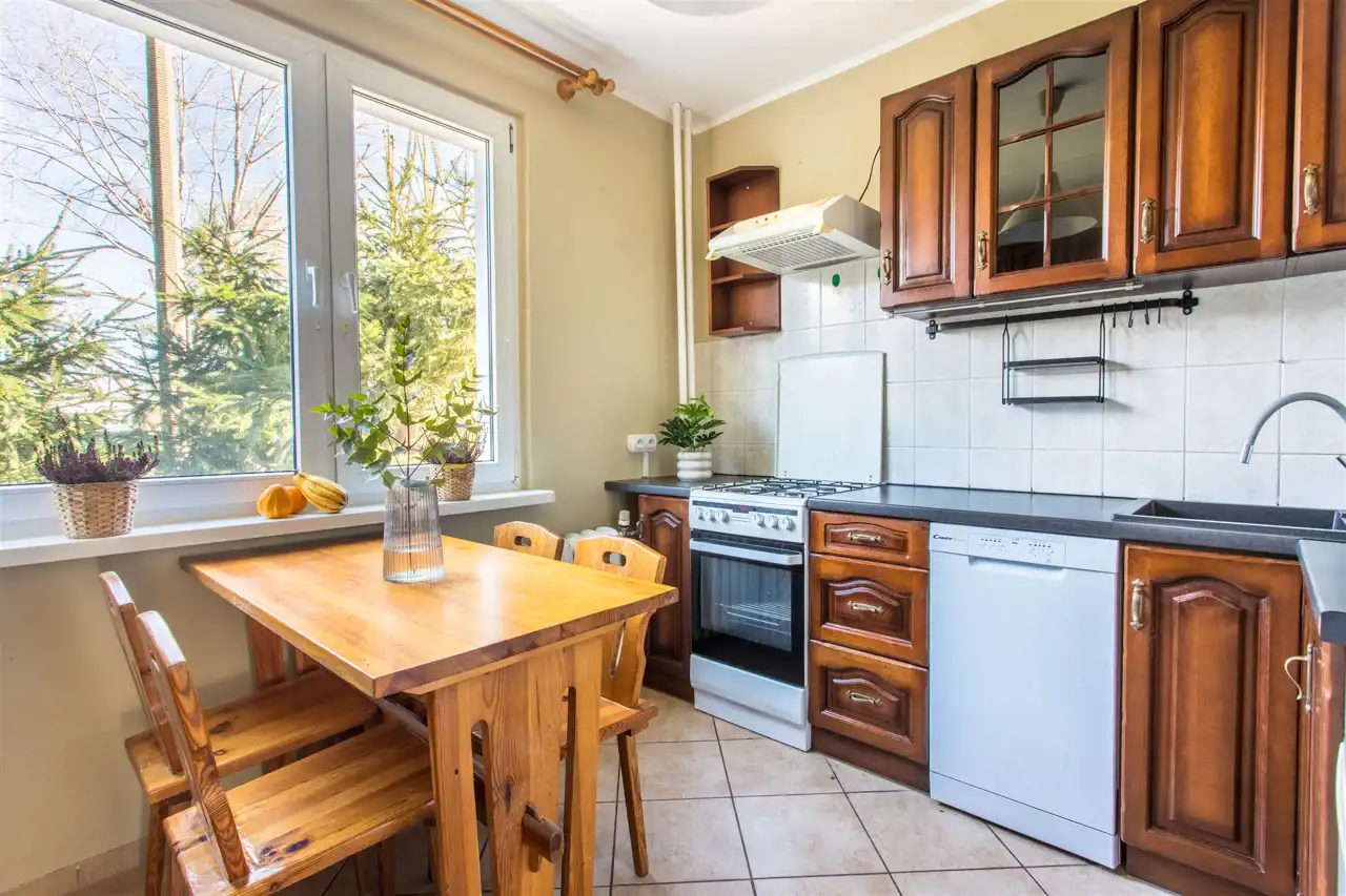- Osobna kuchnia z dużym oknem – idealna do wspólnego gotowania i rozmów przy stole.