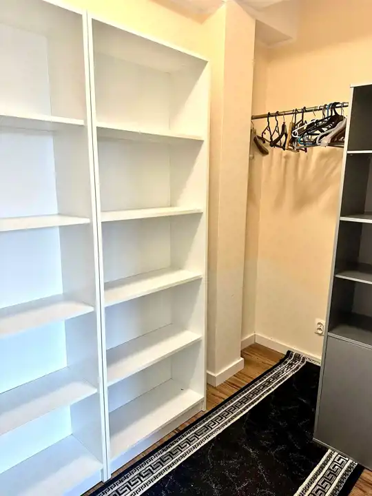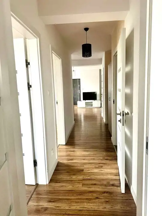 Powierzchnia 96m2, na co składają się trzy osobne pokoje (w tym jeden z garderobą), salon z aneksem kuchennym oraz łazienka.