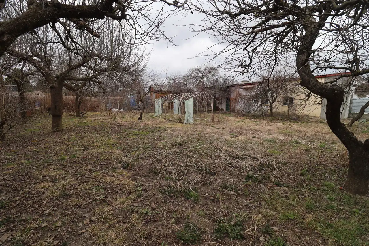 - na części działki trawnik, rosliny ozdobne, drzewka owocowe /brzoskwinie, jabłonki/