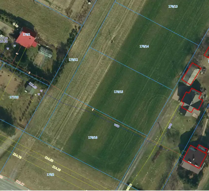 - Media Woda: w drodze; Kanalizacja: brak; Prąd: na działce; Gaz: w drodze dojazdowej