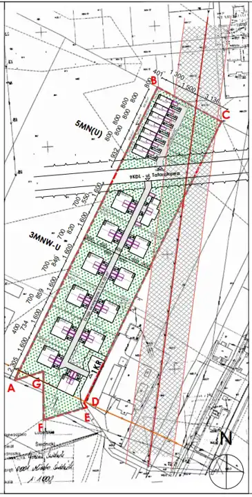 Oferowany grunt o powierzchni 17 975 m² i szerokości frontu około 64 m to unikalna nieruchomość, która stanowi doskonałą propozycję zarówno dla osób planujących budowę domu jednorodzinnego, jak i dla inwestorów szukających perspektywicznego terenu pod zabudowę mieszkaniową i komercyjną. Według analizy chłonności gruntu, na działce może powstać 7 lokali mieszkalnych w zabudowie szeregowej i 12 budynków dwulokalowych - inwestycje przedzielone planowaną drogą - łącznie 4782,40 m2 powierzchni użytkowej.