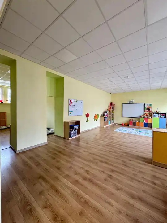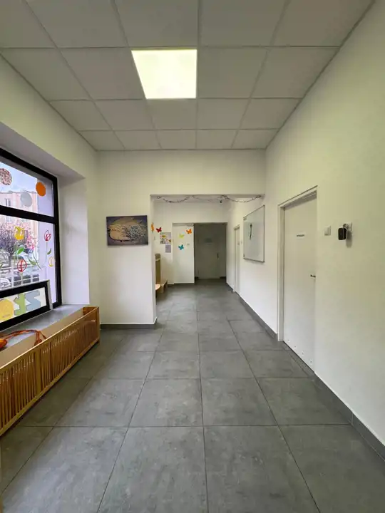 Lokal z osobnym wejściem i witrynami, obecnie przystosowany do działalności typu żłobek, przedszkole lub szkoła, jednak z możliwością łatwej adaptacji do innych funkcji, takich jak: