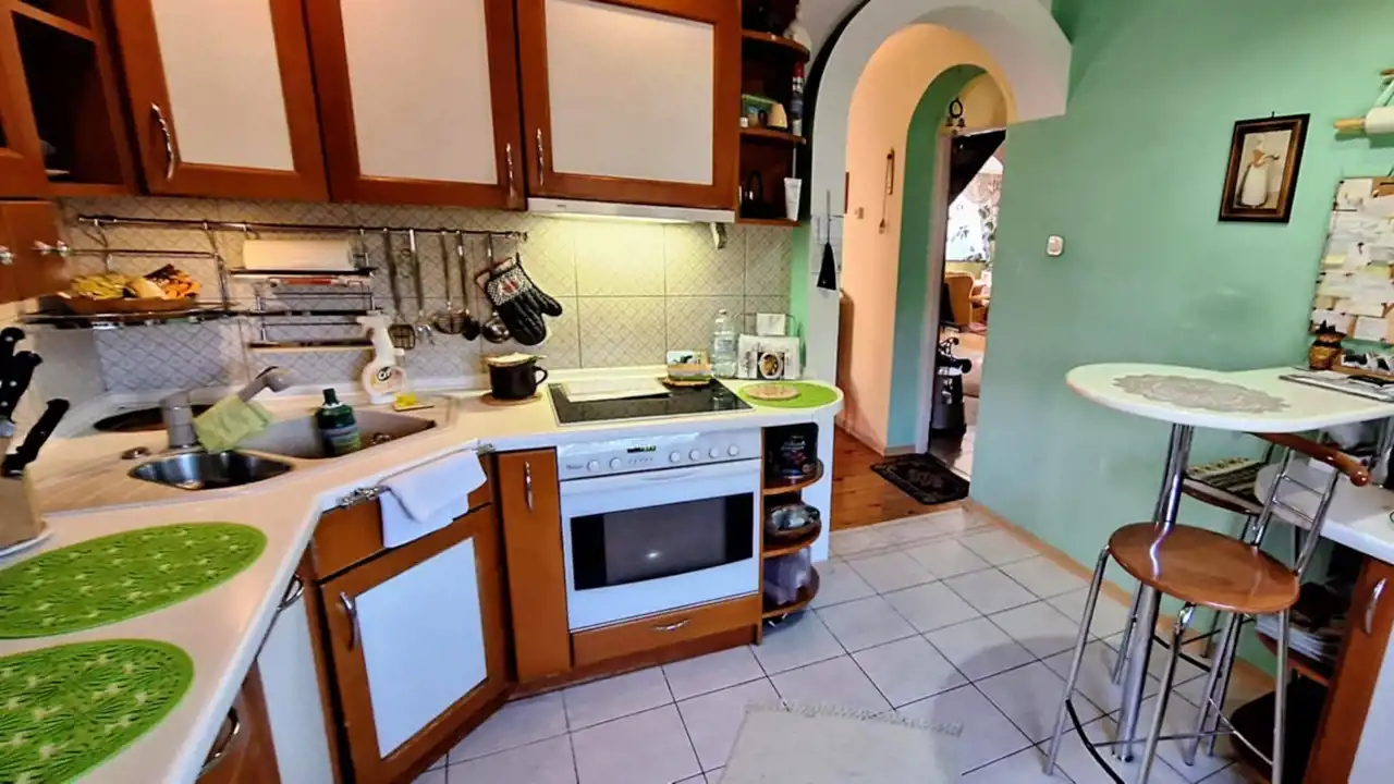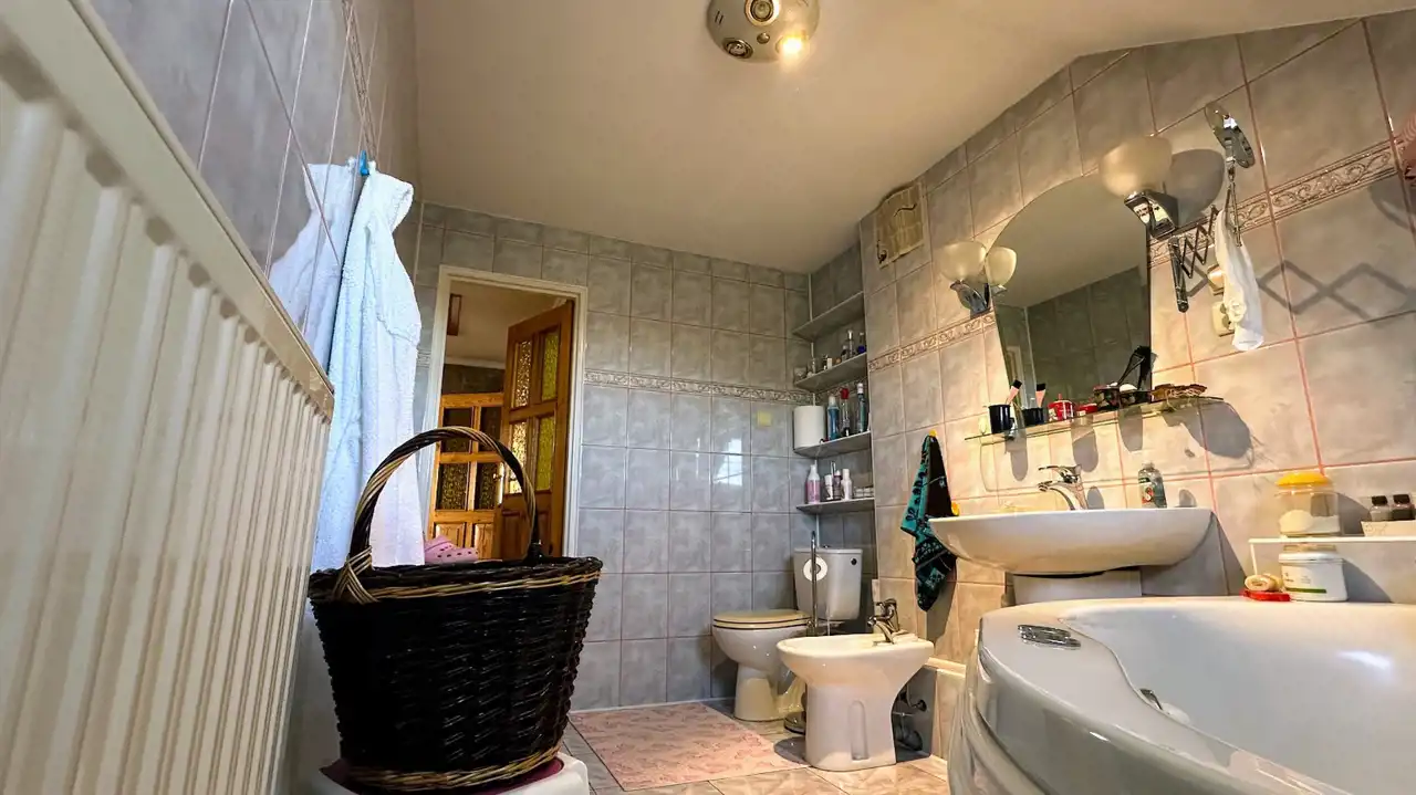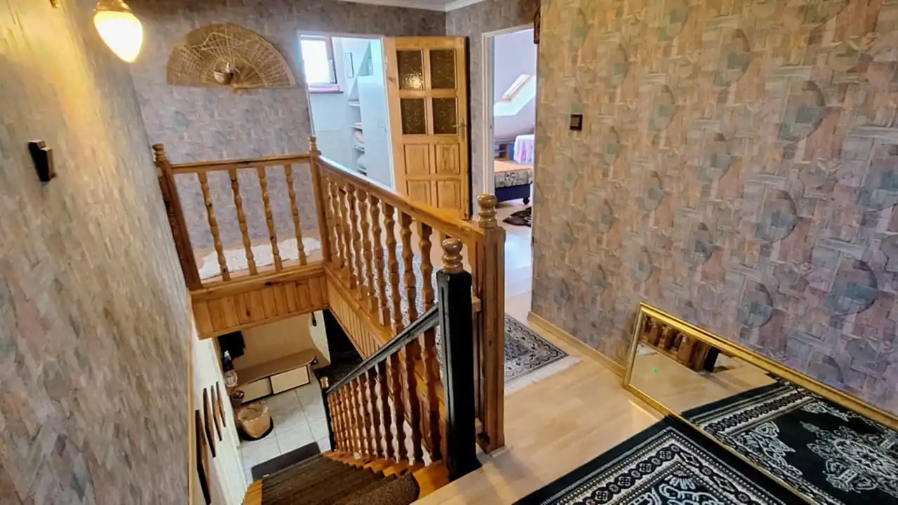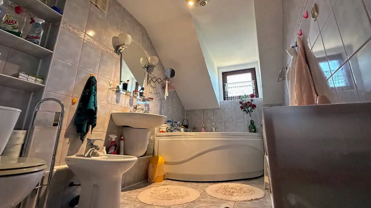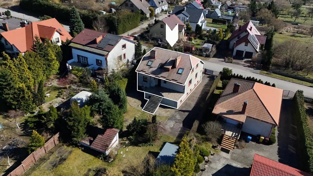 Dom wolnostojący o powierzchni 270m2. Przyziemie - 2 oddzielne mieszkania z kuchniami, łazienkami oraz niezależnym ogrzewaniem. Pralnia, kotłownia, garaż. Parter - salon, jadalnia, pokój, kuchnia, spiżarnia , łazienka. Piętro - 3 pokoje, sypialnia, łazienka, garderoba. Dwa tarasy od frontu oraz tyłu budynku. Ogrzewanie oraz ciepła woda z pieca gazowego lub na pellet i drewno. Działka 1677m2 z drzewami owocowymi , krzewami ozdobnymi , kwiatami oraz garażem blaszanym.