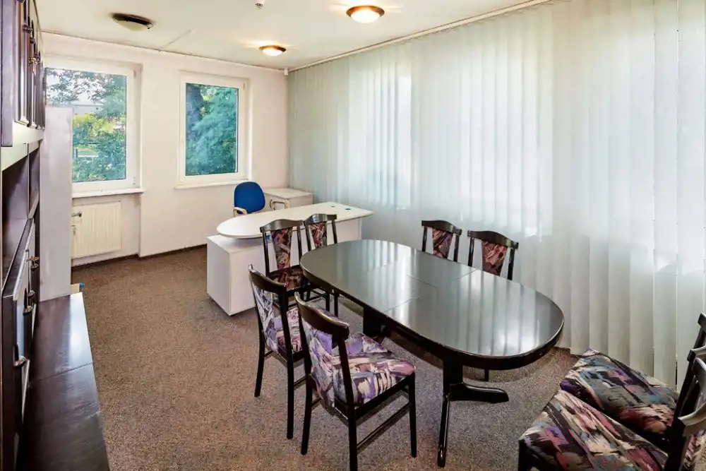 Na ogrodzonym terenie znajduje się budynek biurowy o powierzchni użytkowej 1049,79 m2 oraz budynek magazynowy (32,9 m2). Obiekt 3-kondygnacyjny wraz z piwnicą. Wewnątrz mieszczą się powierzchnie biurowe (m.in. w układzie gabinetowym), pomieszczenia socjalne, gospodarcze i techniczne. Budynek z korzystną ekspozycją i wjazdem od ul. Połczyńskiej. Na działce część terenu utwardzona z miejscami parkingowymi (część za budynkiem technicznym teren zielony) oraz w okolicy miejsca postojowe. Nieruchomość wyposażona jest w instalacje: elektryczną, wodno-kanalizacyjną, gazową i centralnego ogrzewania.
