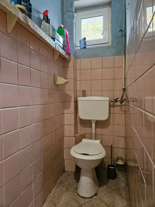 - Rozkład pomieszczeń: 4 pokoje, przedpokój, wiatrołap, kuchnia z oknem, łazienka oraz WC – również z oknem.