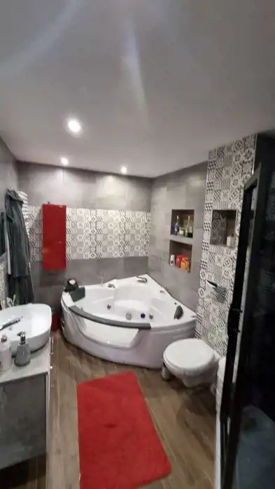 Piętro nieruchomości to mieszkanie o powierzchni 220 m2 W jego skład wchodzi duży salon o powierzchni około 50 m2, przestronna kuchnia, sypialnia główna z garderobą, pokój gościnny oraz dwie sypialnie i łazienka z wanną z hrydromasażem i kabina prysznicowa.
