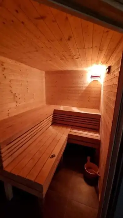 Na piętrze nieruchomości znajduje się również strefa wypoczynkowa składająca się sauny i siłowni oraz dodatkowej łazienki