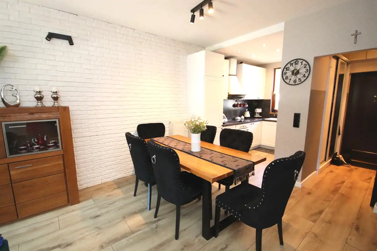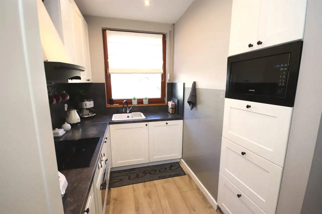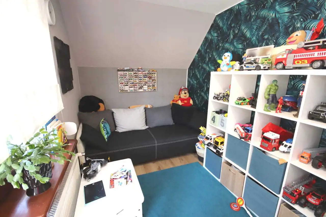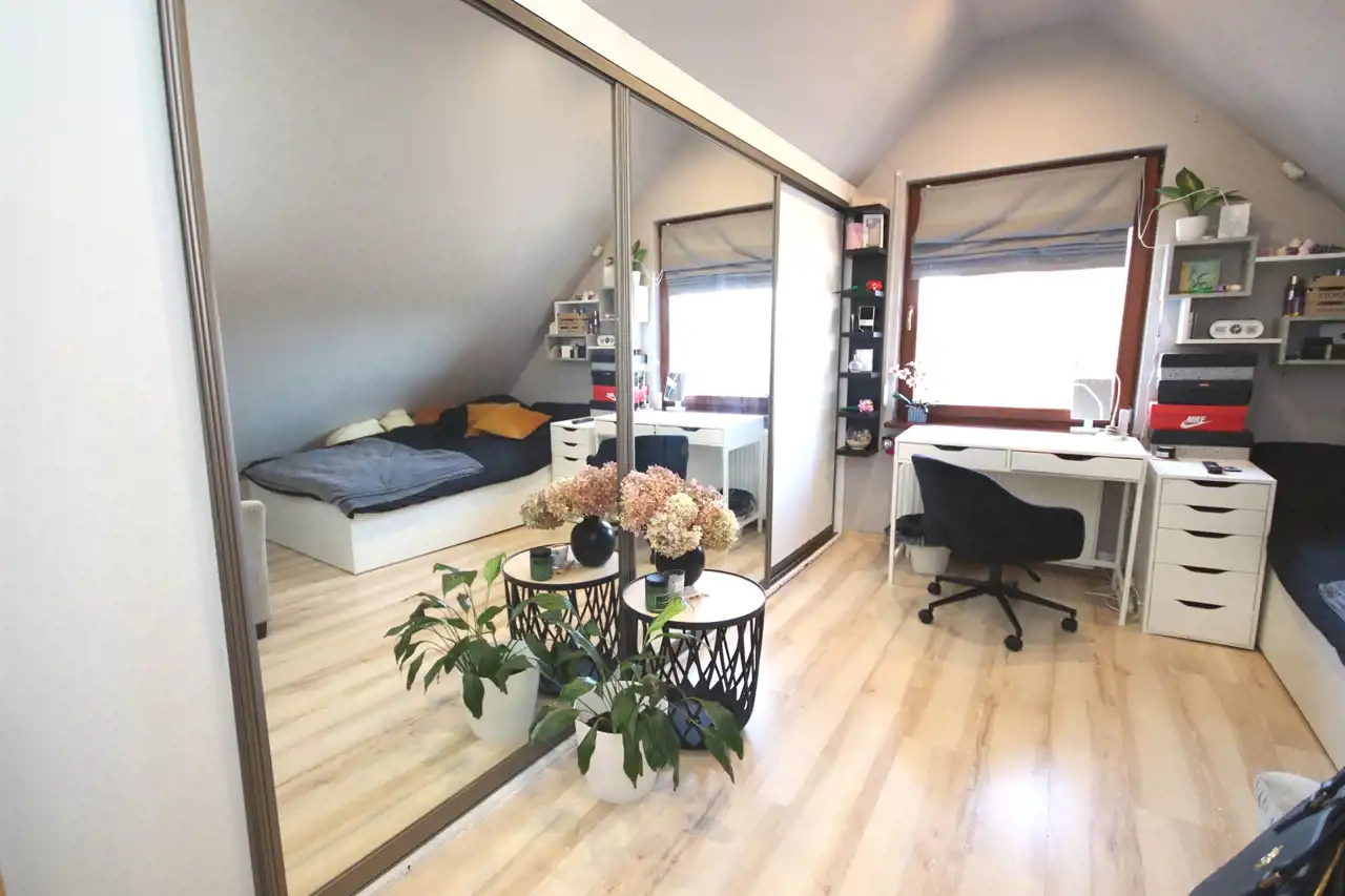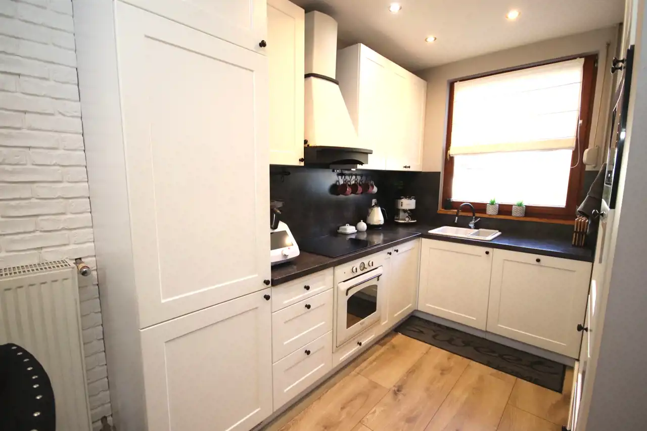 **W salonie kominek z płaszczem wodnym, w kuchni zabudowa kuchenna, w przedpokoju pojemna szafa w zabudowie, a w sypialni na poddaszu zagospodarowana garderoba.