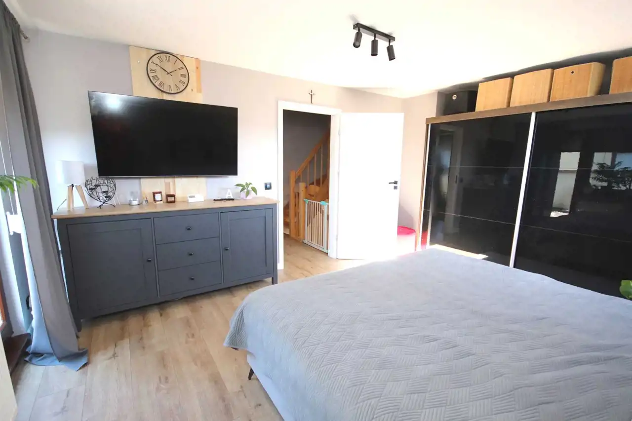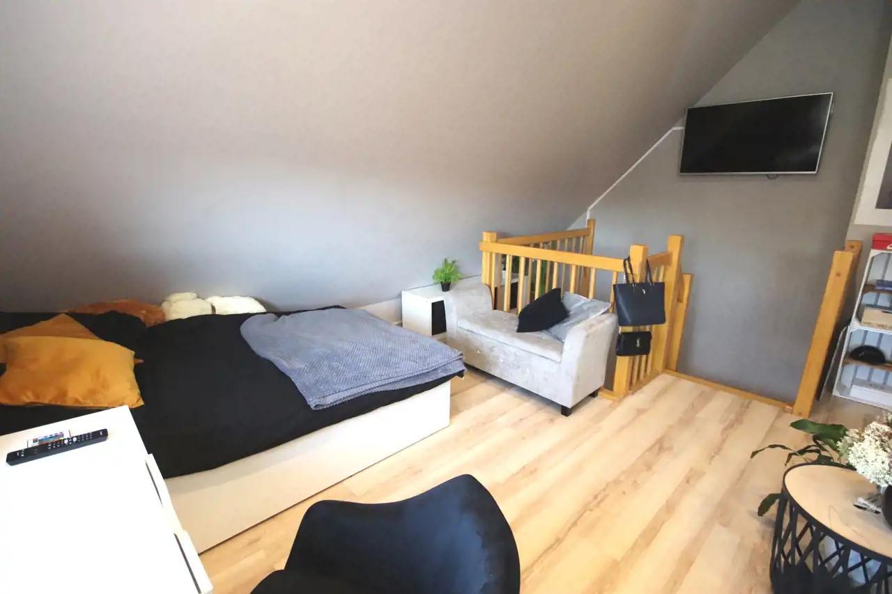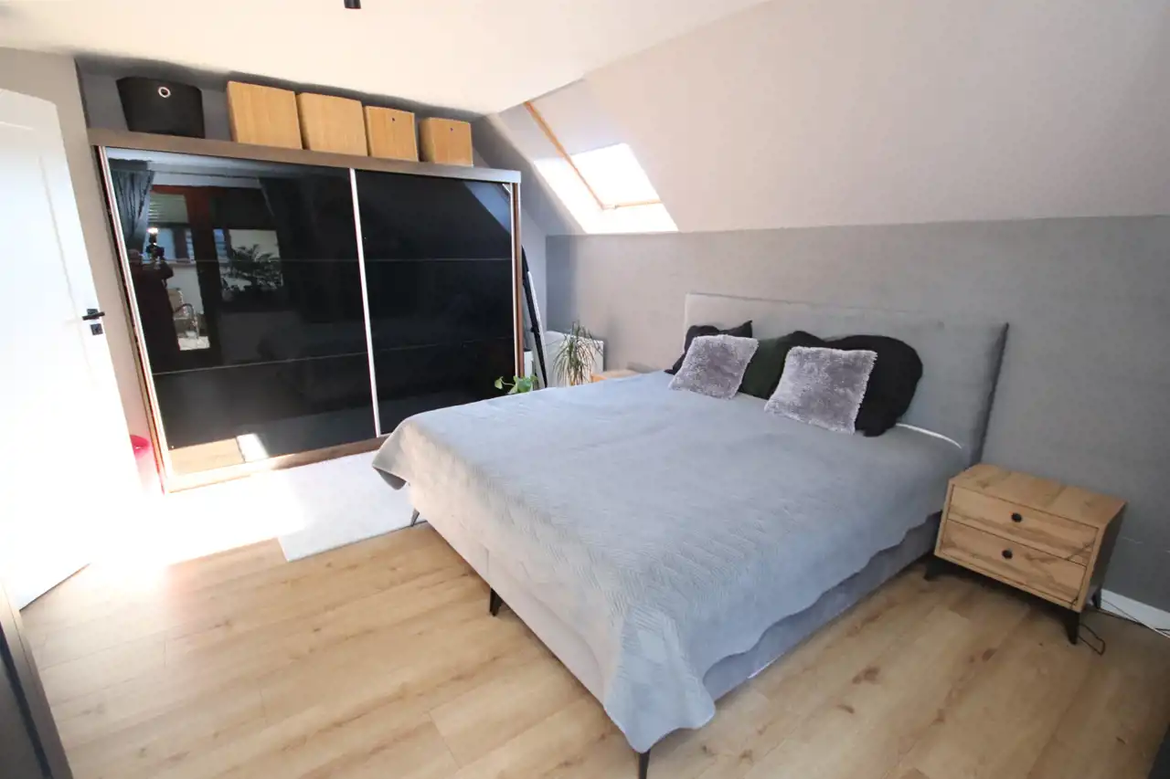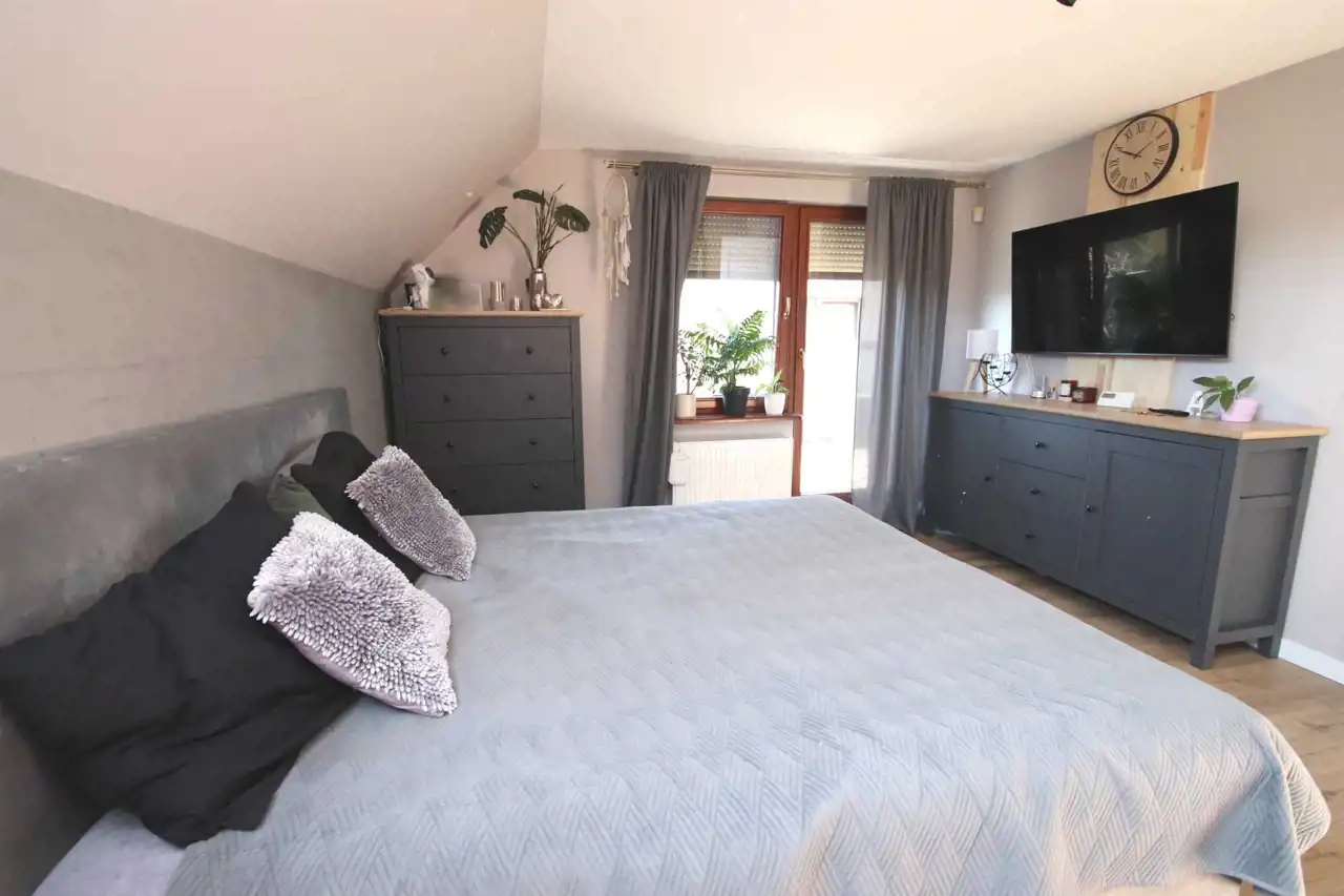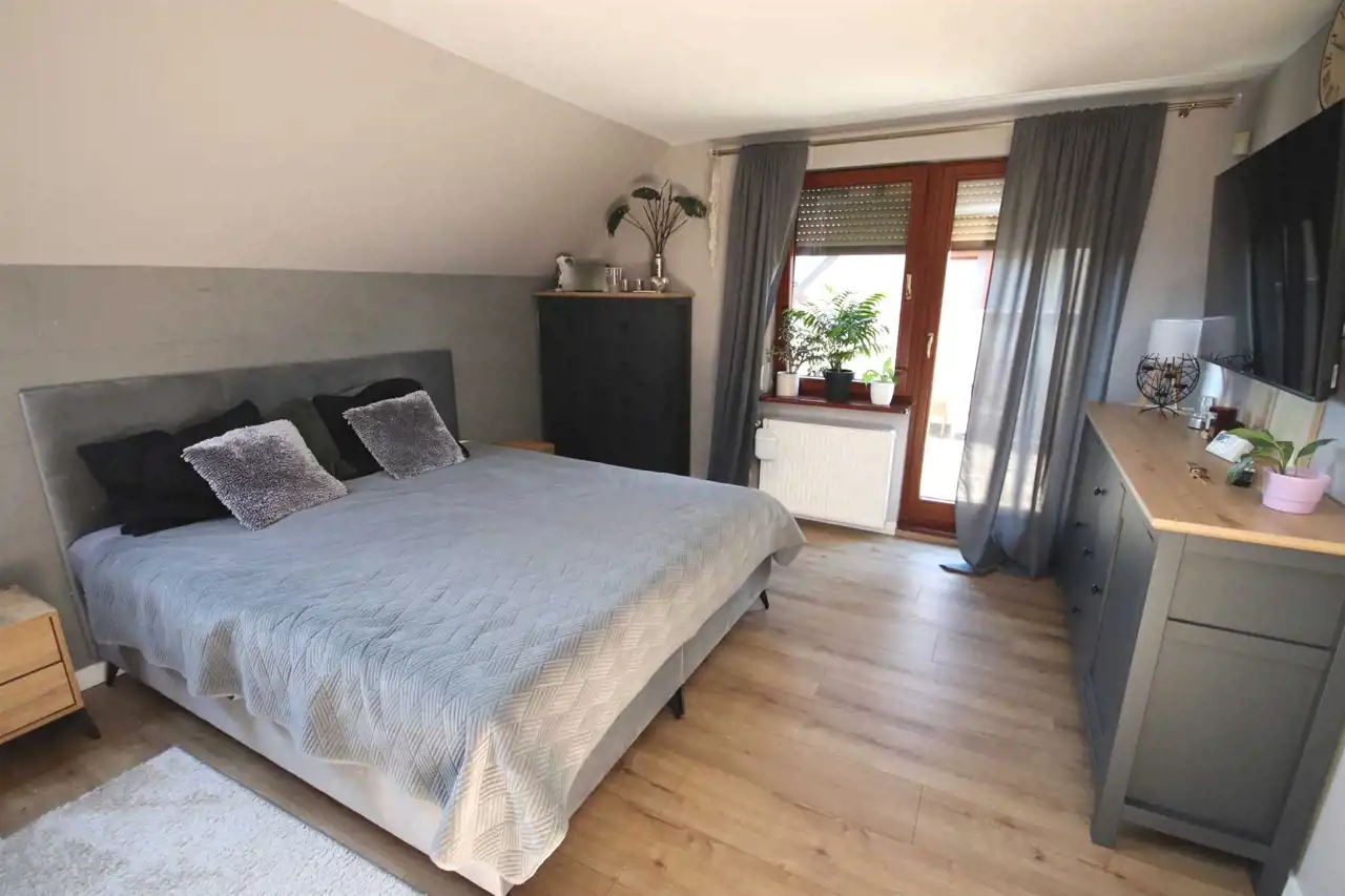 **W salonie kominek z płaszczem wodnym, w kuchni zabudowa kuchenna, w przedpokoju pojemna szafa w zabudowie, a w sypialni na poddaszu zagospodarowana garderoba.