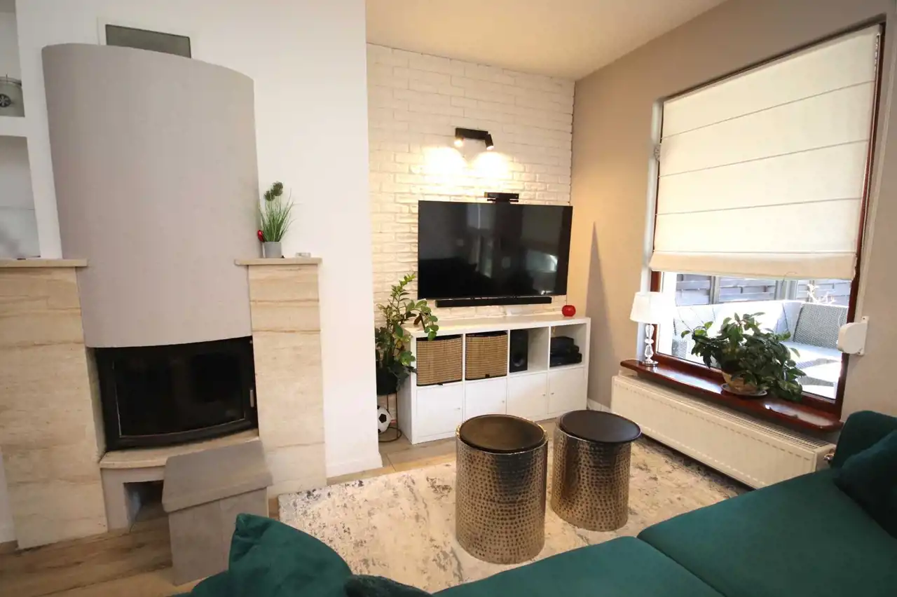 **Dwa źródła ogrzewania: gazowe- piec dwufunkcyjny oraz kominek.