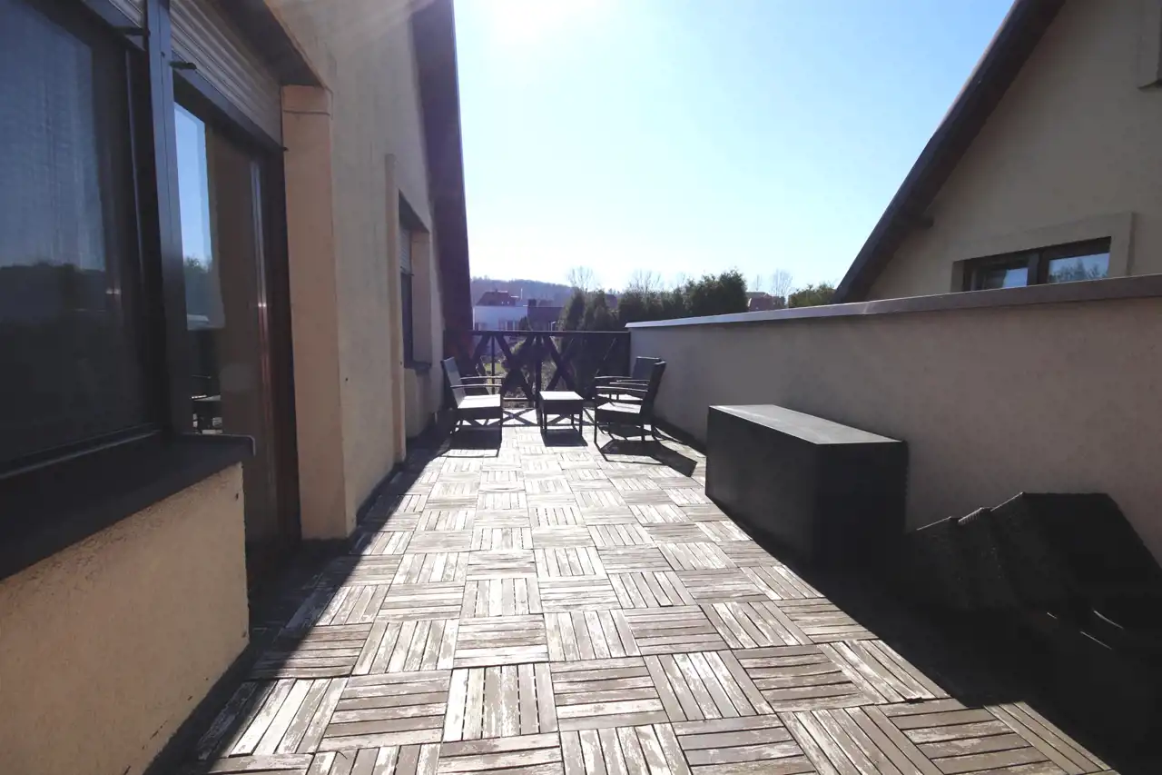 **Z dwóch sypialni wyjście na przestronny i nasłoneczniony taras znajdujący się nad garażem o powierzchni 26,40m2, jako dodatkowa przestrzeń wypoczynkowa.