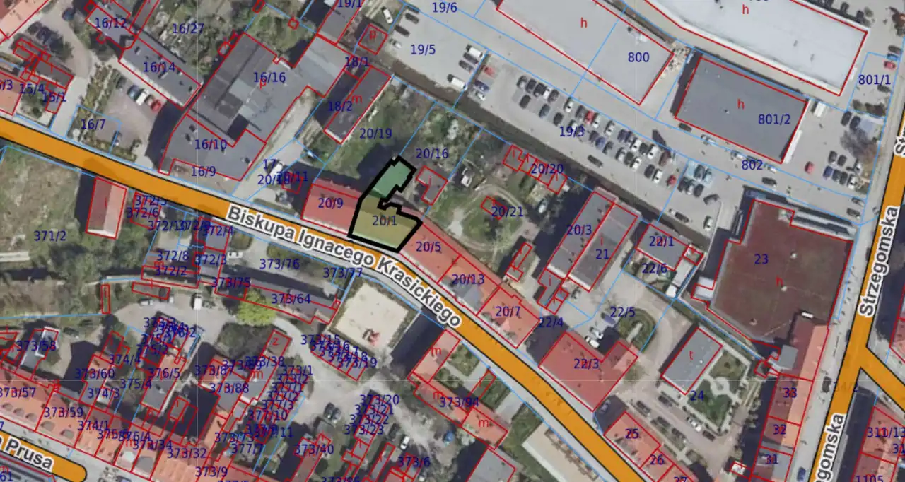 Najbliższe otoczenie nieruchomości stanowią działki zabudowane budynkami o charakterze usługowo- handlowym. Dojazd do nieruchomości odbywa się od strony południowej -dz. Nr ew. 379 (ul. Biskupa Ignacego Krasickiego), drogą gminną o nawierzchni asfaltowej, oświetlonej, z urządzonymi chodnikami.