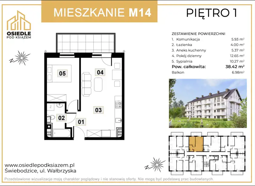 - Charakterystyka mieszkania 38.54 m2, 2 pokoje