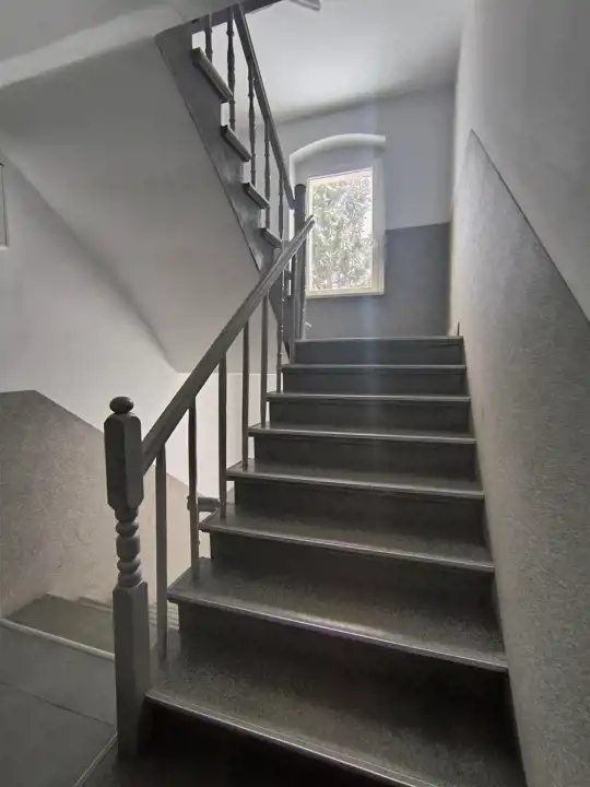 Kamienica po termomodernizacji z pięknie wyremontowaną klatką schodową.