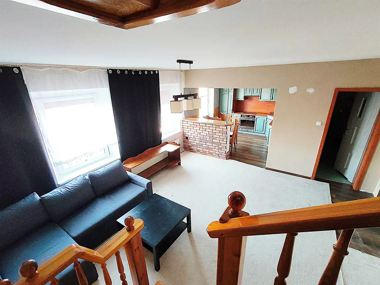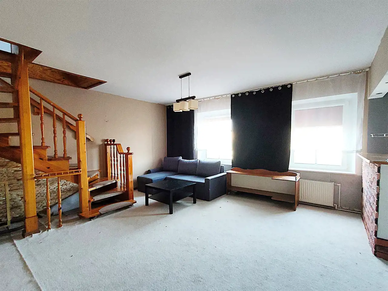 Stan: mieszkanie do odświeżenia, remontu - można zaadoptować według własnego uznania. Na podłogach panele i kafelki, okna PCV, schody drewniane. Ogrzewanie - gazowe piec dwufunkcyjny (dwu letni). W mieszkaniu instalacje starszego typu.