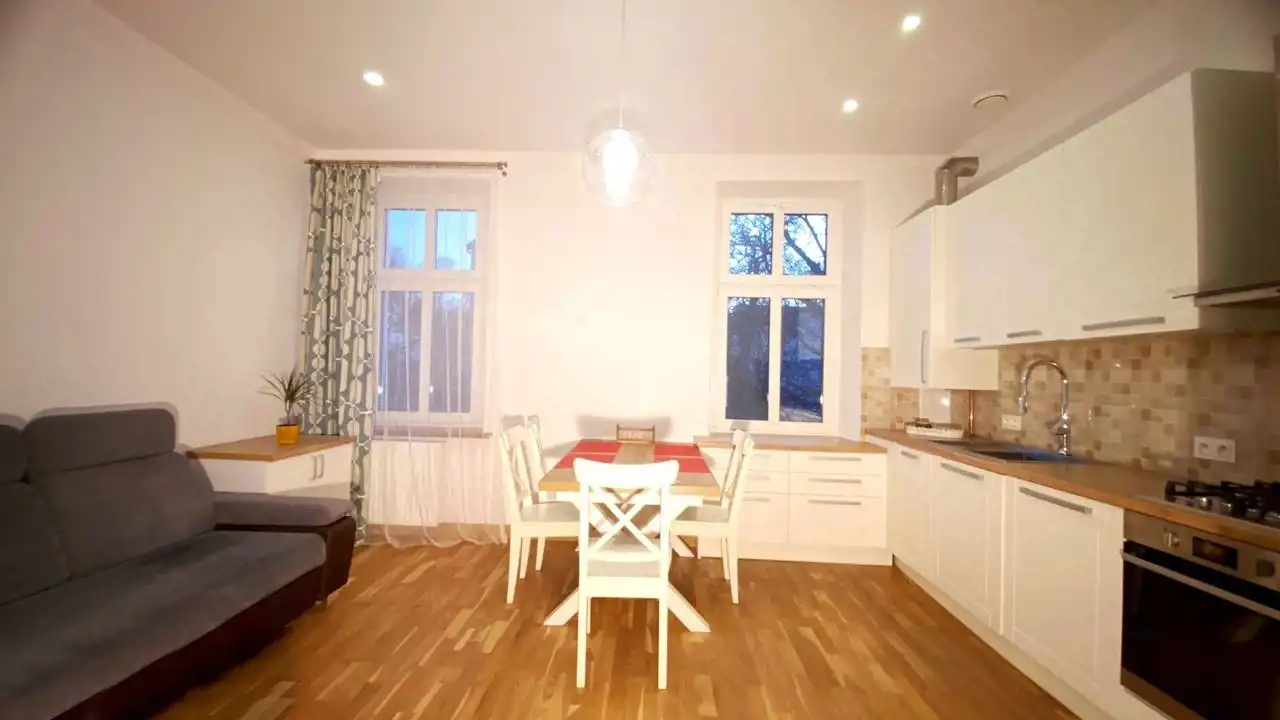 Mieszkanie znajduje się na pierwszym piętrze, klatka schodowa wyremontowana, dach w kamienicy wymieniony. Do mieszkania przynależy duża piwnica i komórka na strychu. Parking w podwórku.