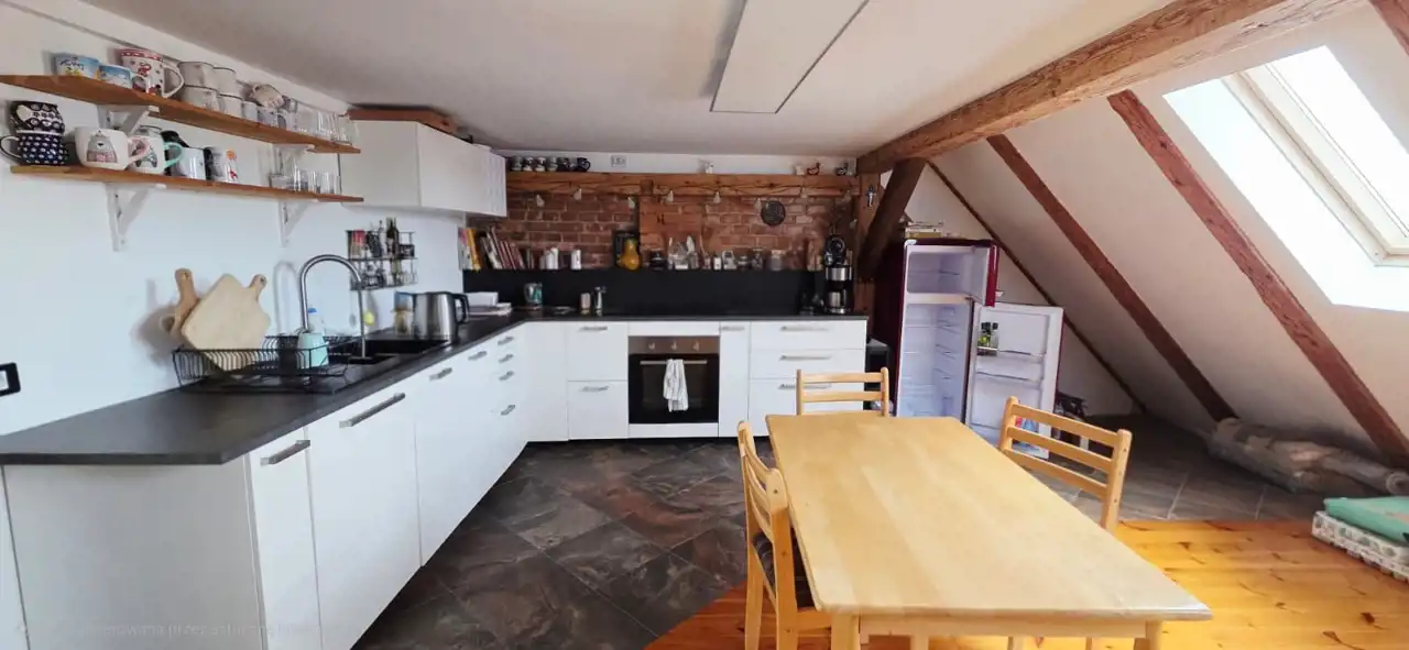 Adaptowane poddasze z wyjątkowym klimatem, po generalnym remoncie w 2020 roku, gdzie znajdują się:
