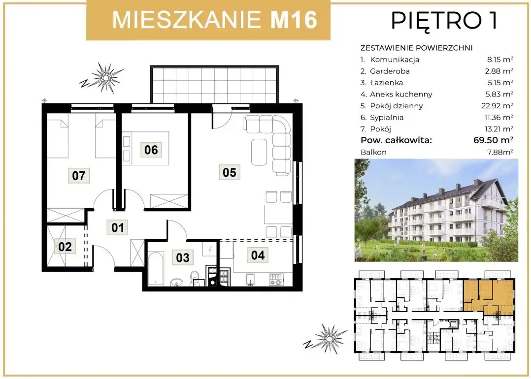 - Charakterystyka mieszkania 69.5 m2, 3 pokoje