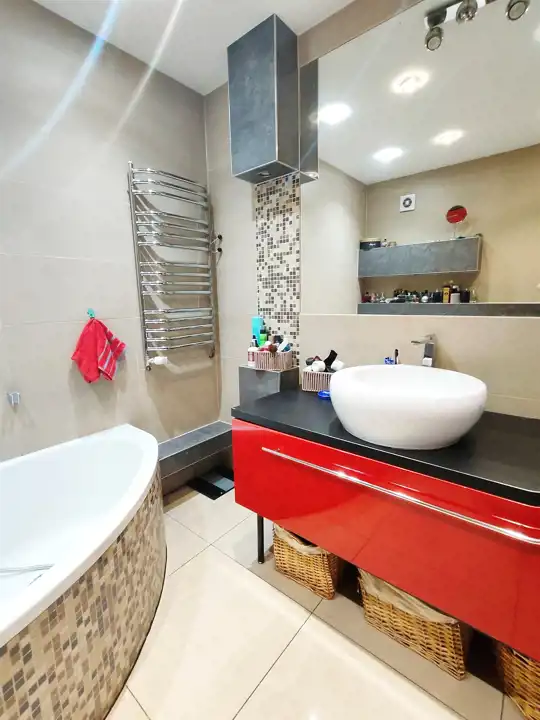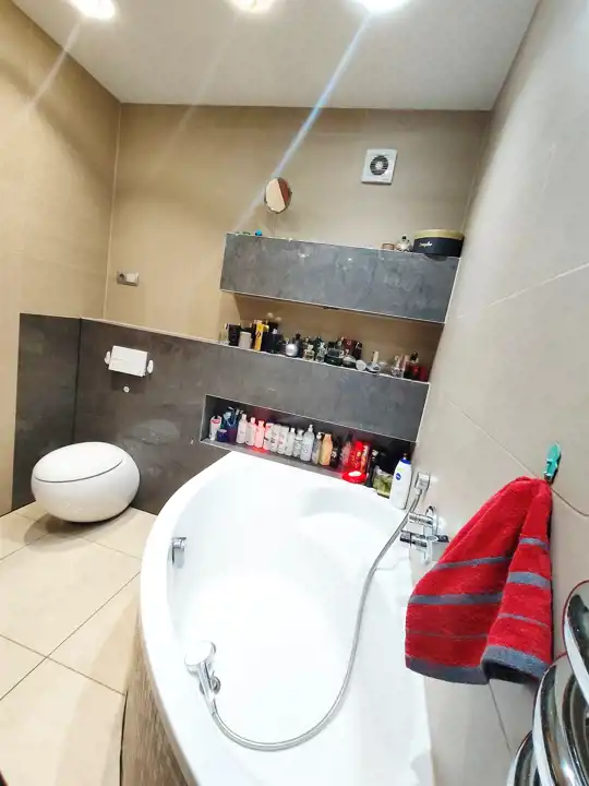 Stan: Mieszkanie wyremontowane, w mieszkaniu wymienione instalacje: gaz i prąd. Ogrzewanie gazowe piec dwufunkcyjny, okna plastikowe. Podwieszony sufit w salonie i przedpokoju, na ścianach tynki-gładzie, w kuchni kafle na podłodze, łazienka glazura.