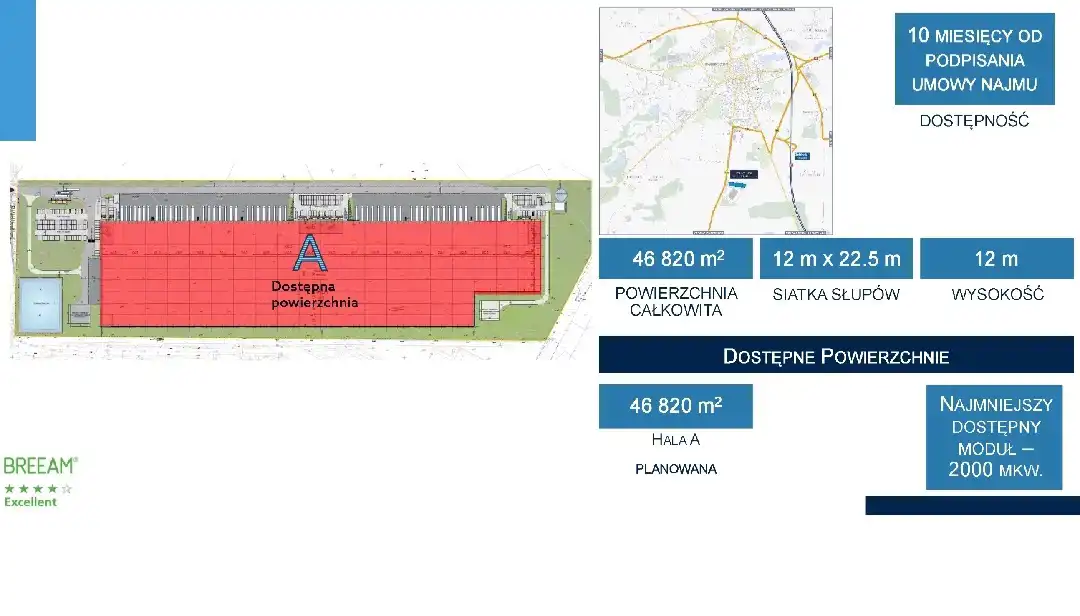 DOSTĘPNE POWIERZCHNIE Hala ŚWIEBODZIN I - 46 820 mkw - najmniejszy dostępny moduł 2000 mkw .
