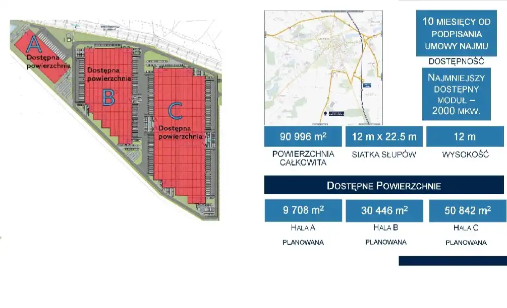 City Invest poleca do wynajmu nowoczesna hala w pobliżu drogi ekspresowej S3, niedaleko węzła z drogą S3 gwarantuje świetne połączenie( niedaleko Amazon) Położenie po za miastem jest to teren dostosowany do najemców z różnych branż, istnieje możliwość prowadzenia zarówno działalności magazynowej, jak i produkcyjnej.