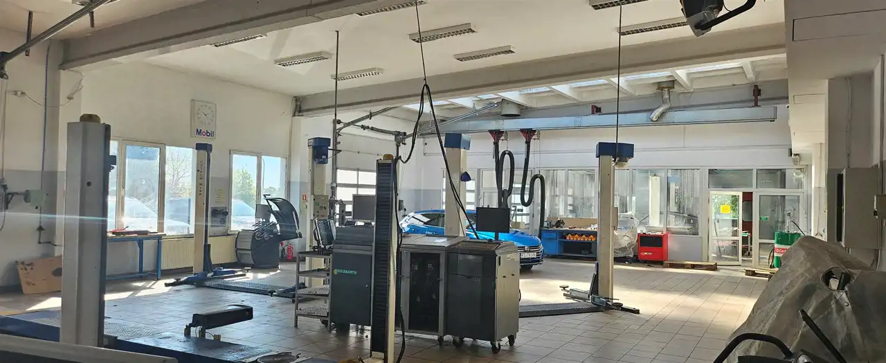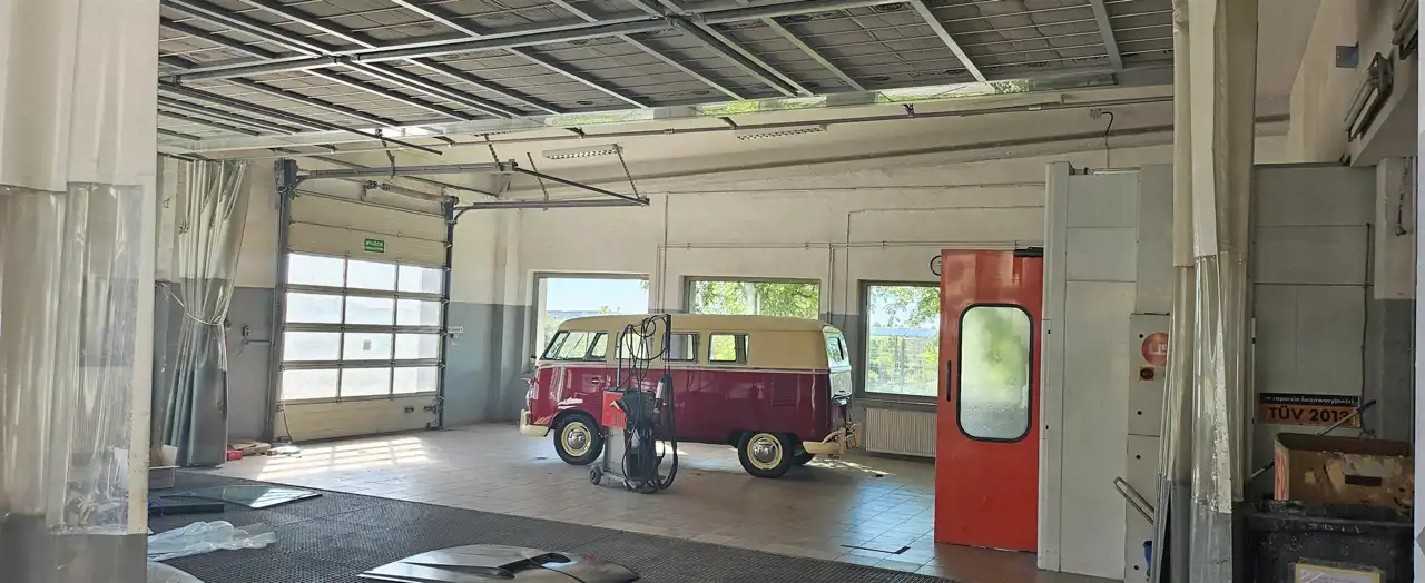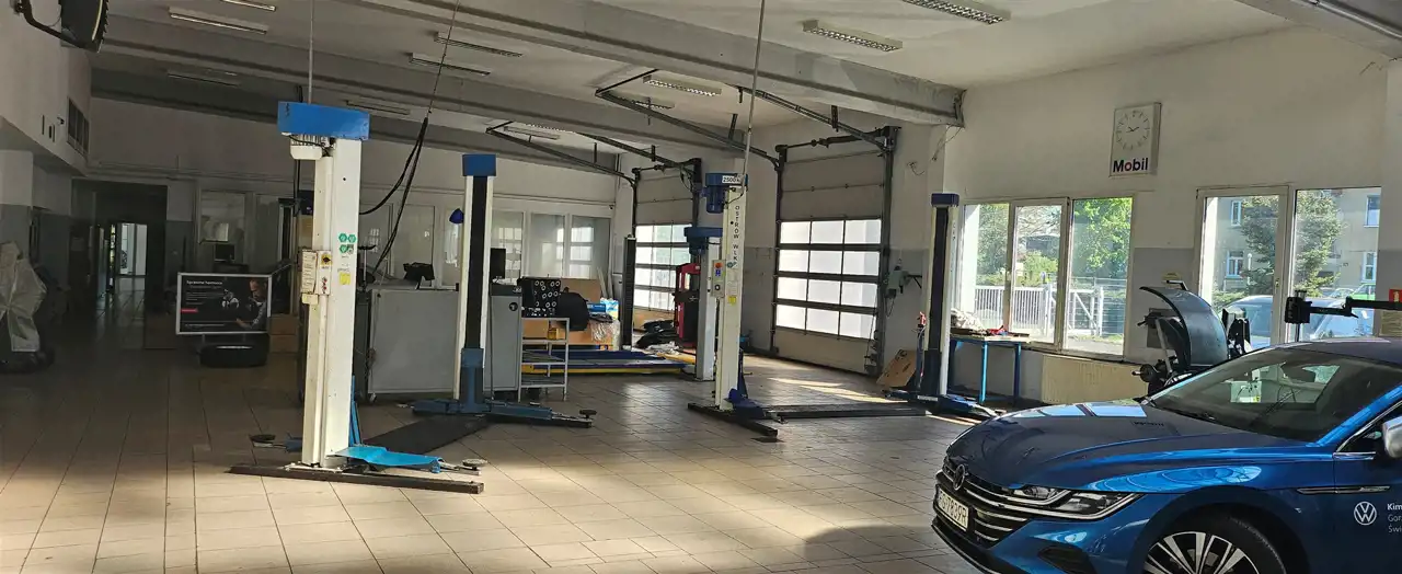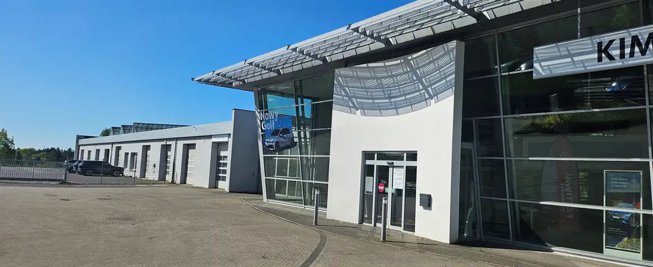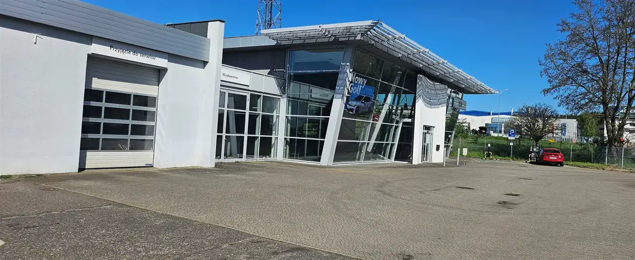 Nieruchomość składa się z dwóch brył: starej z serwisem technicznym i magazynem oraz nowej z salonem sprzedaży, biurami i magazynem. Stara część w konstrukcji szkieletowej żelbetowej zmodernizowana oraz nowsza część (salon sprzedaży) w konstrukcji szkieletowej stalowej wypełnionej szkłem oraz ścianą murowaną (stylowa architektura salonów VW), cały obiekt niepodpiwniczony. Część starsza -jednokondygnacyjna, nowsza -dwukondygnacyjna. Nieruchomość zabudowana salonem autoryzowanym w którym znajdują się: serwis naprawczy, salon sprzedaży oraz magazyn części.Siedem podnosników plus komora lakiernicza.